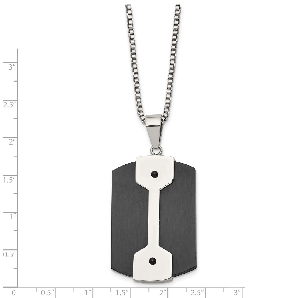 Stainless Steel 22in Brushed & Polished Black IP-plated Dog Tag Necklace