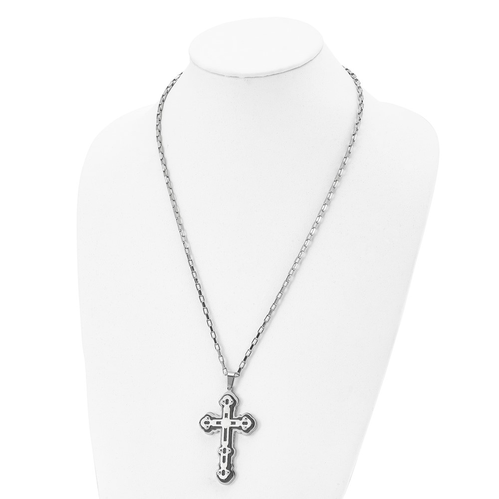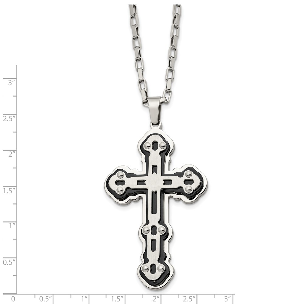 Stainless Steel Brushed and Polished Black IP-plated Cross 24in Necklace