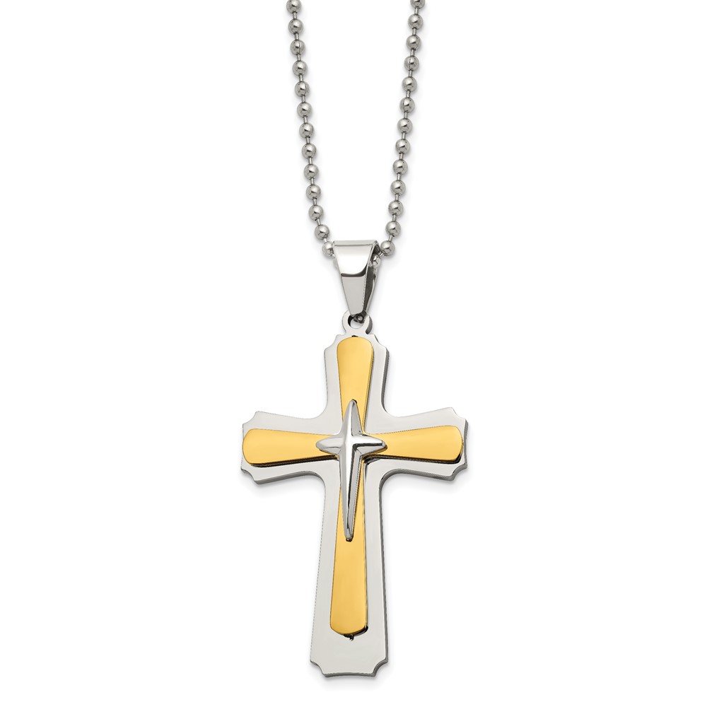 Chisel Stainless Steel Polished Yellow IP-plated Cross Pendant on a 22 inch Ball Chain Necklace