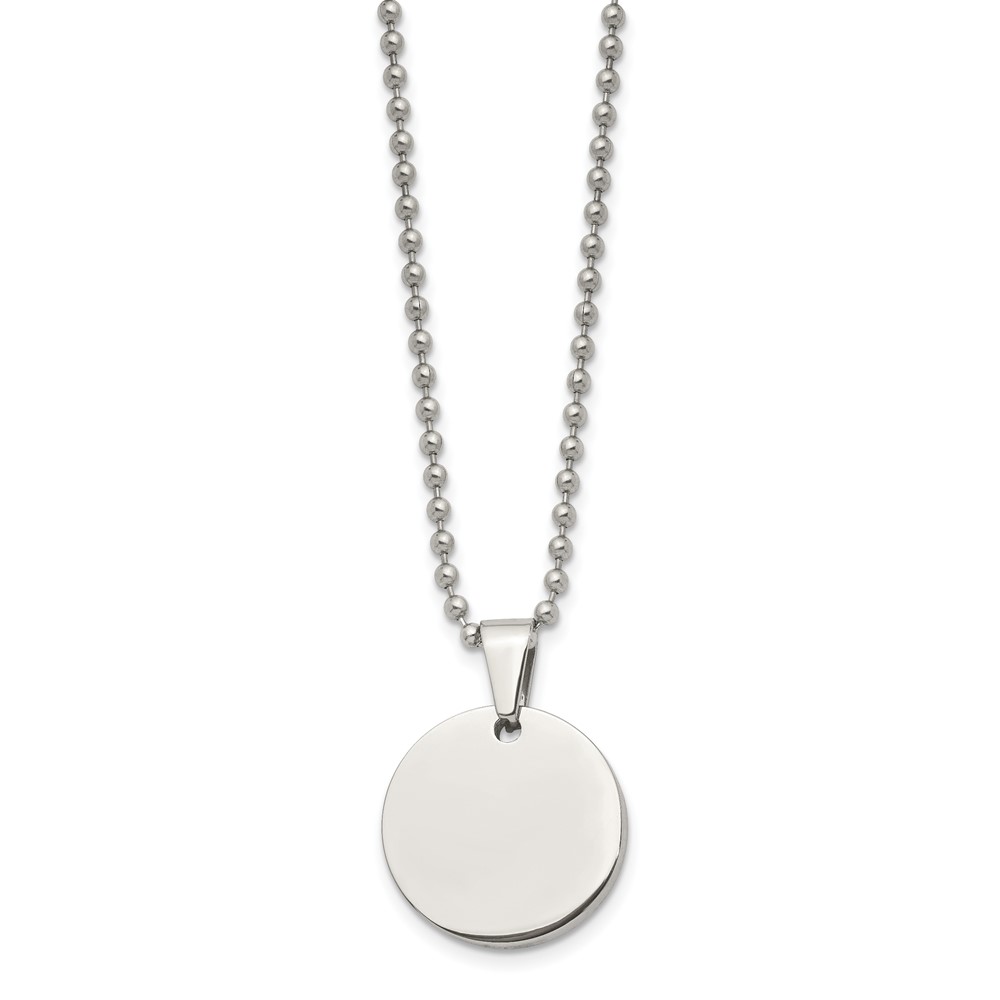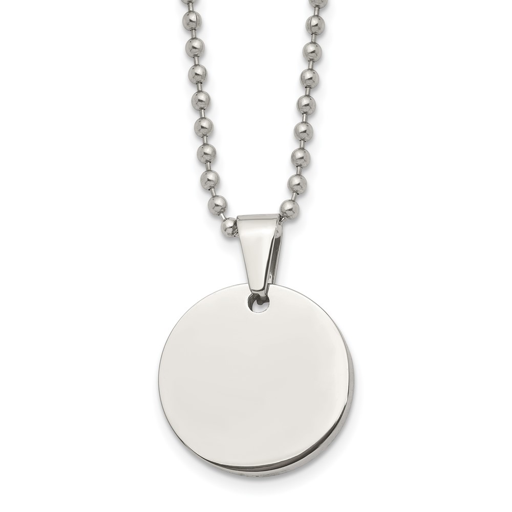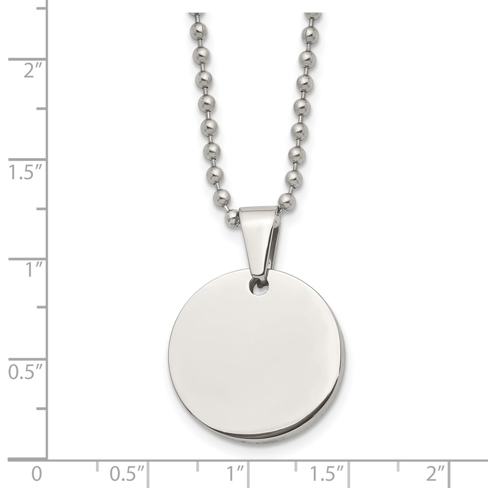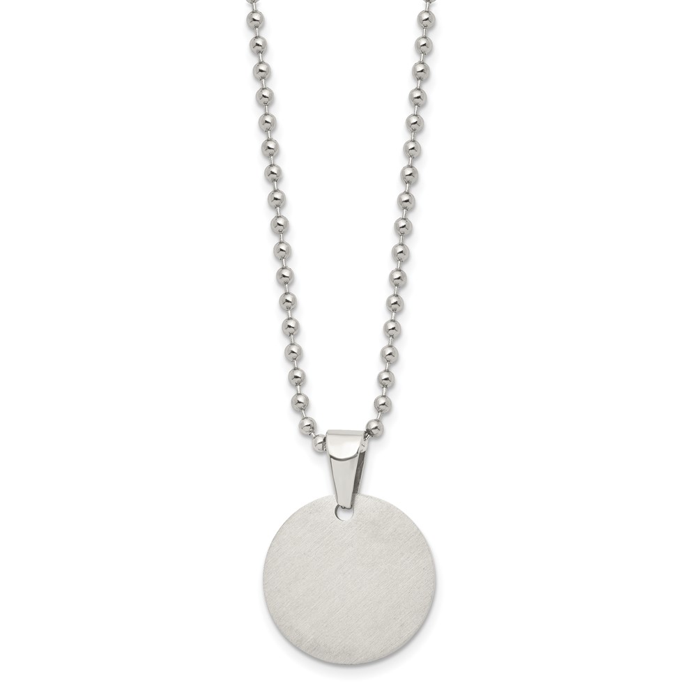 Chisel Stainless Steel Brushed and Polished Reversible Round 4mm Dog Tag on a 24 inch Ball Chain Necklace
