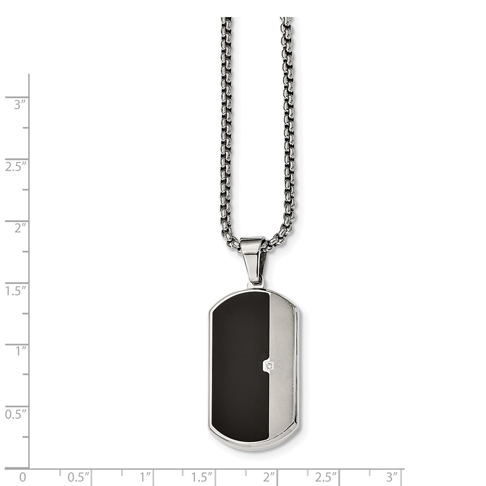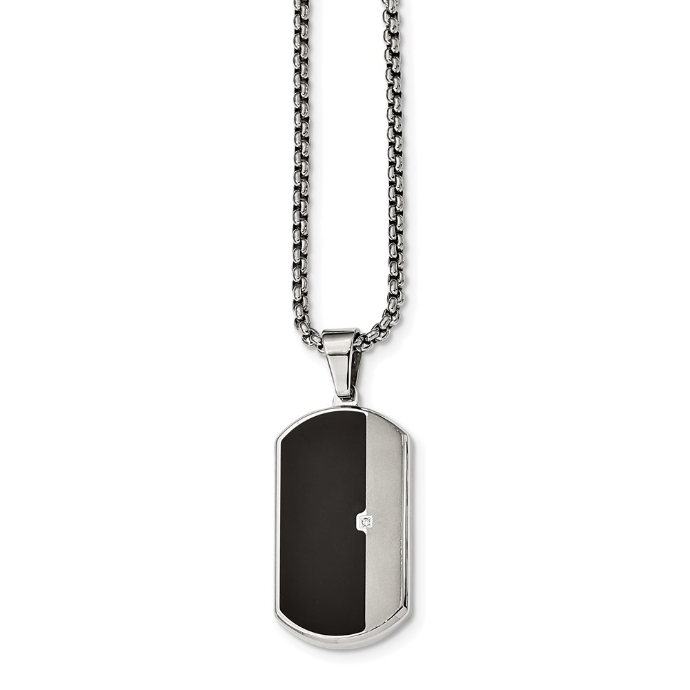 Stainless Steel Brushed and Polished w/Enamel and CZ Dog Tag Necklace