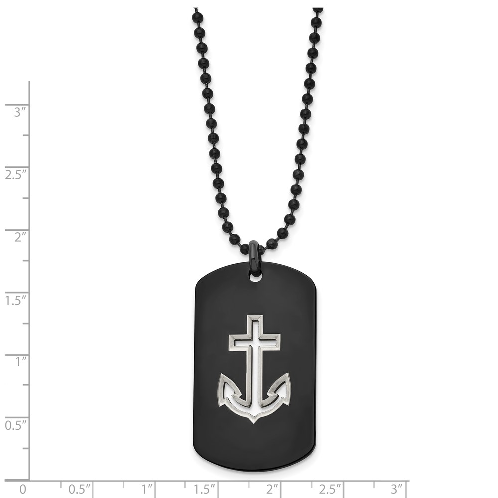 Chisel Stainless Steel Polished Black IP-plated Anchor Dog Tag on a 22 inch Ball Chain Necklace