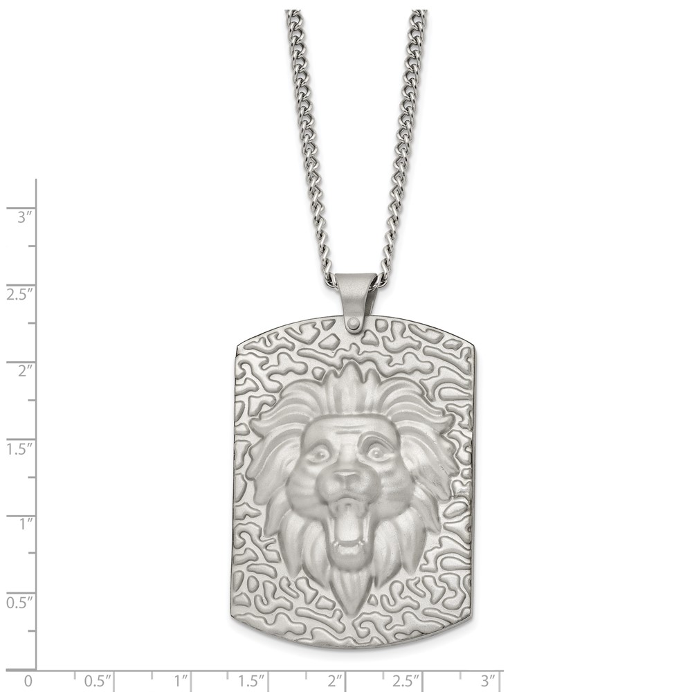 Stainless Steel Matte Finish Lion Head Large Dog Tag 24 inch Necklace