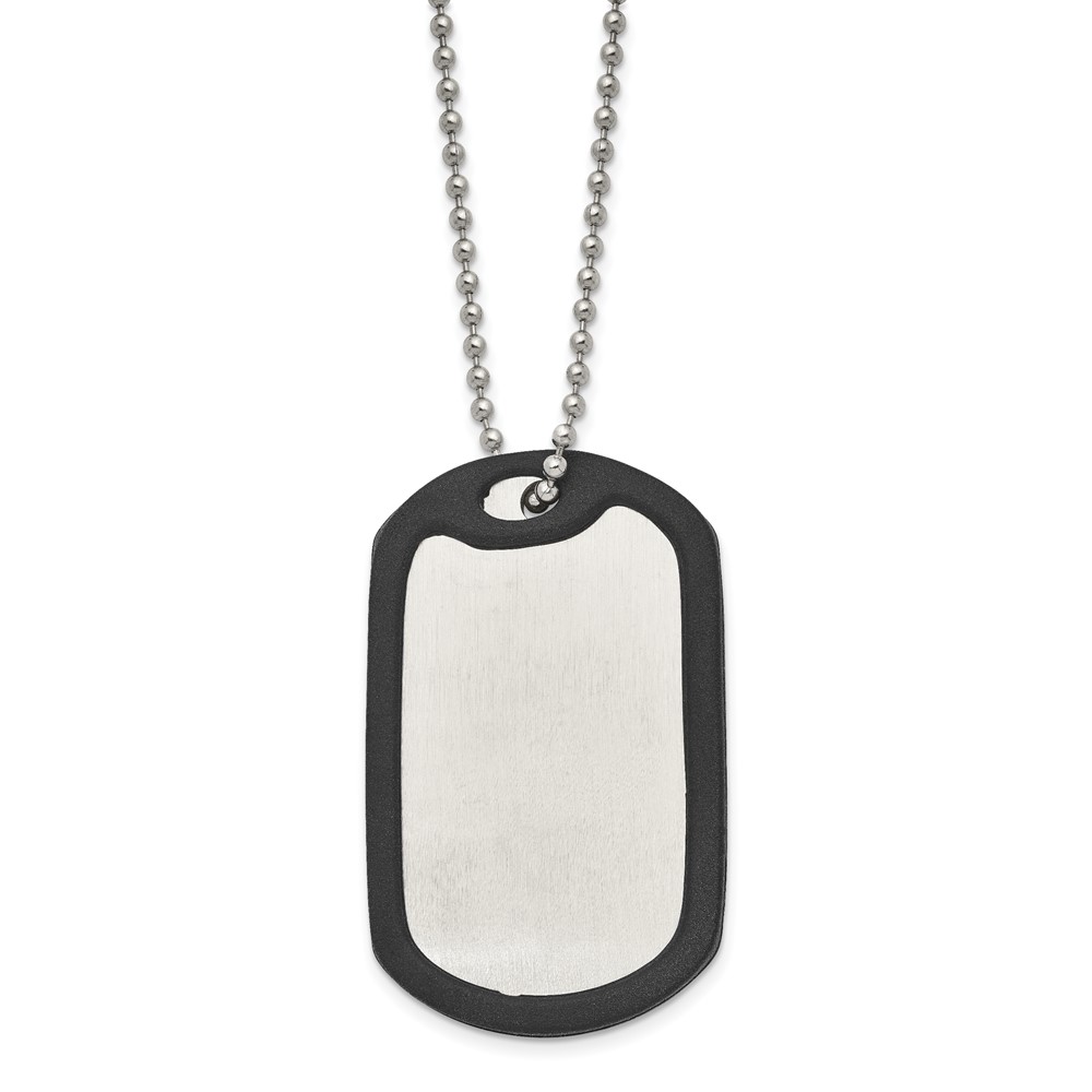 Chisel Stainless Steel Brushedand Polished Dog Tag with Removeable Black Rubber on a 24 inch Ball Chain Necklace