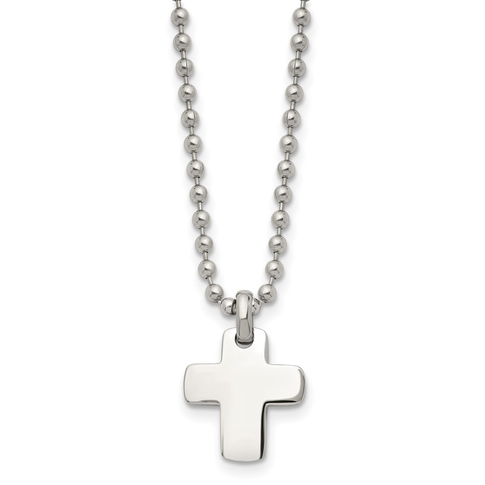 Chisel Stainless Steel Polished Cross Pendant on a 20 inch Ball Chain Necklace