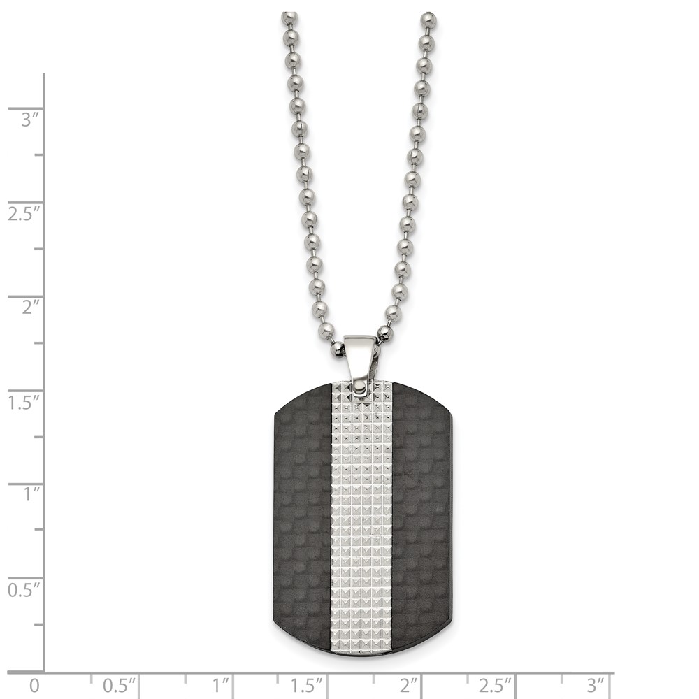 Stainless Steel 22in Polished Black Solid Carbon Fiber & Textured Dog Tag