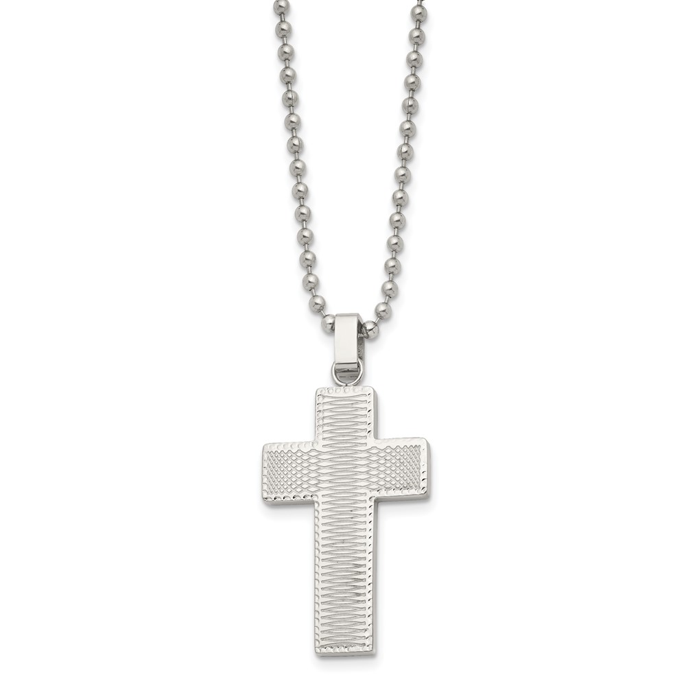 Chisel Stainless Steel Polished Laser Cut Cross Pendant on a 22 inch Ball Chain Necklace