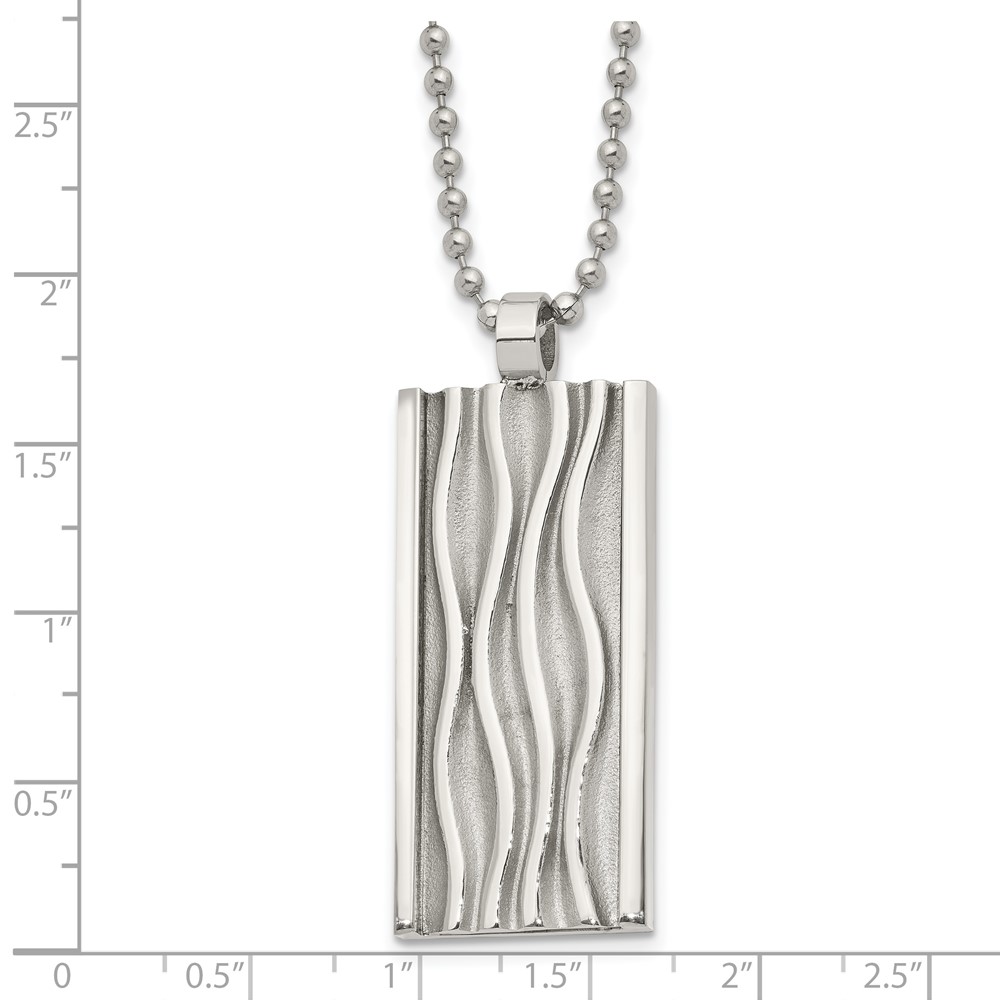 Chisel Stainless Steel Polished and Textured Wave Design Dog Tag on a 22 inch Ball Chain Necklace