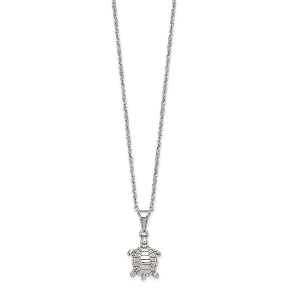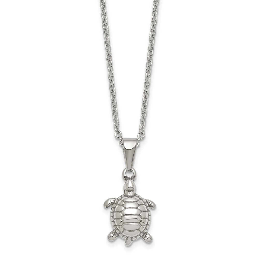 Chisel Stainless Steel Polished and Textured Turtle Pendant on a 22 inch Cable Chain Necklace