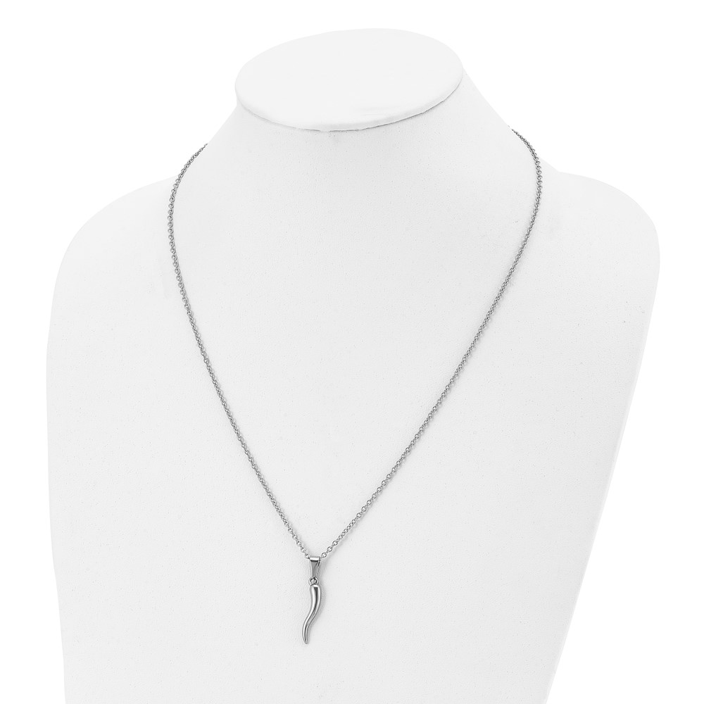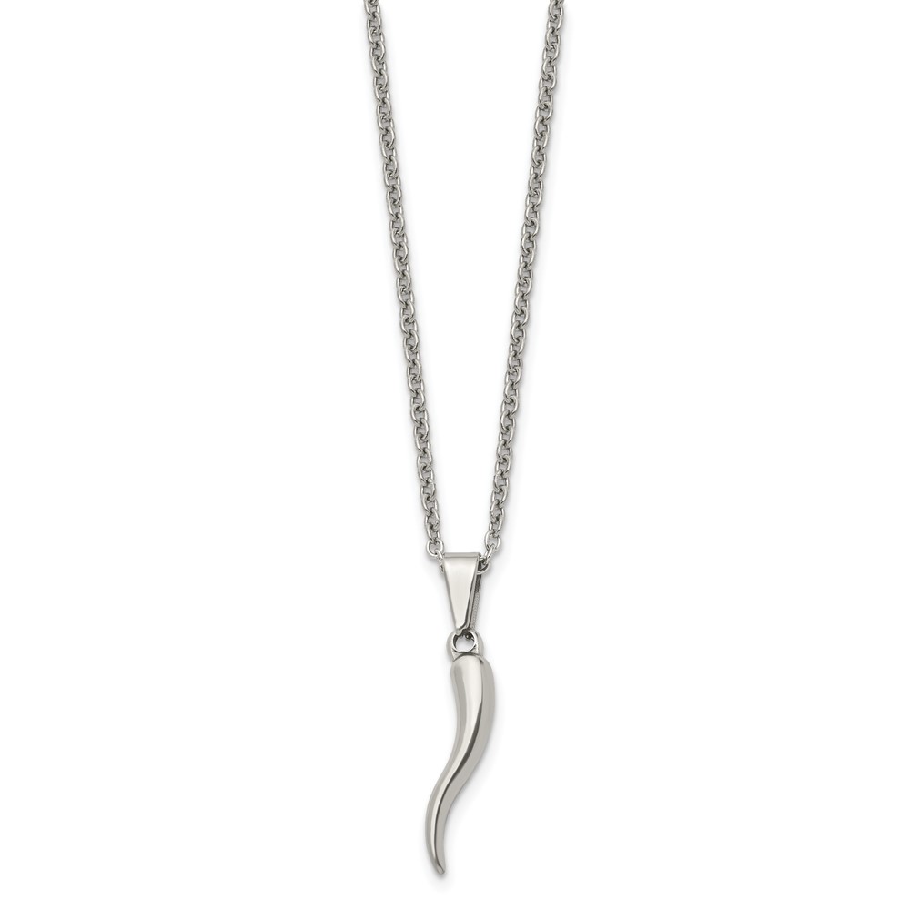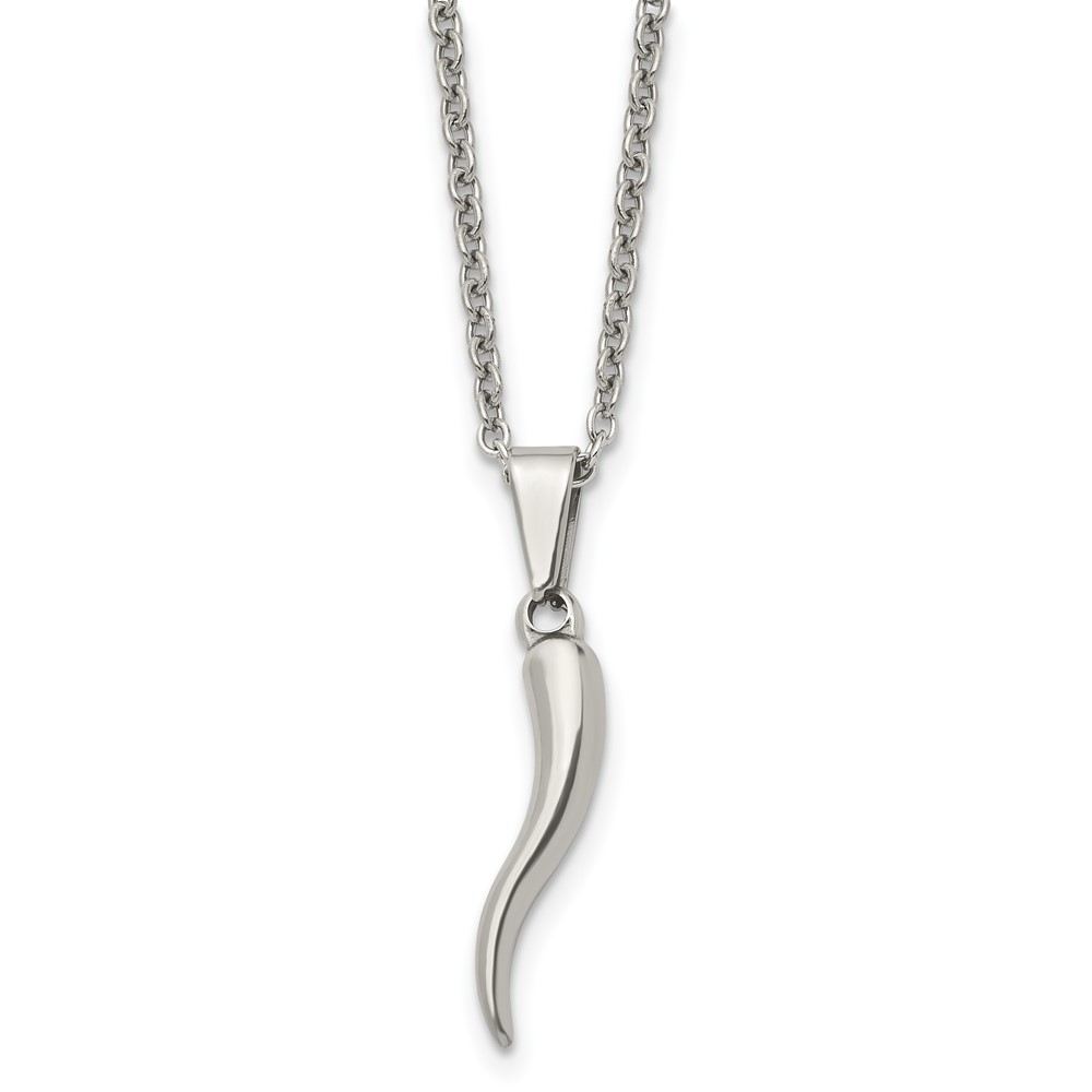 Chisel Stainless Steel Polished Italian Horn Pendant on a 22 inch Cable Chain Necklace