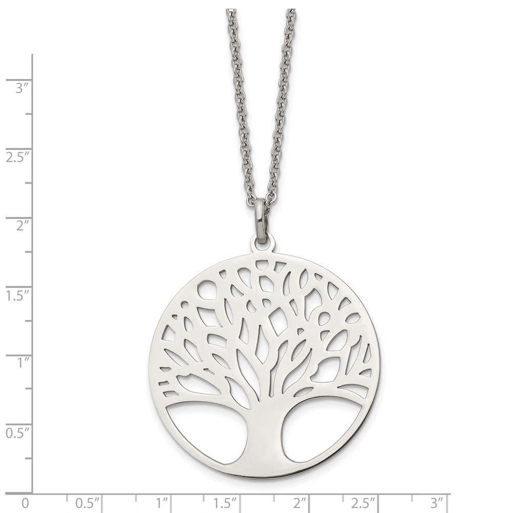 Chisel Stainless Steel Polished Tree of Life Cut-out Large Circle Pendant on a 24 inch Cable Chain Necklace