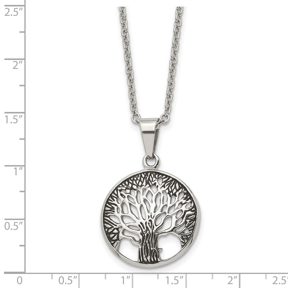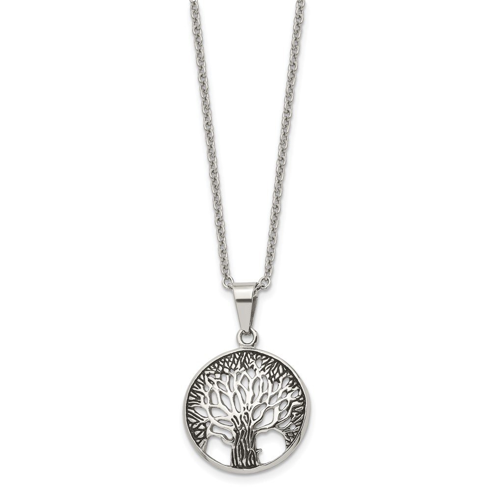 Chisel Stainless Steel Antiqued and Polished Tree of Life Pendant on a 20 inch Cable Chain Necklace