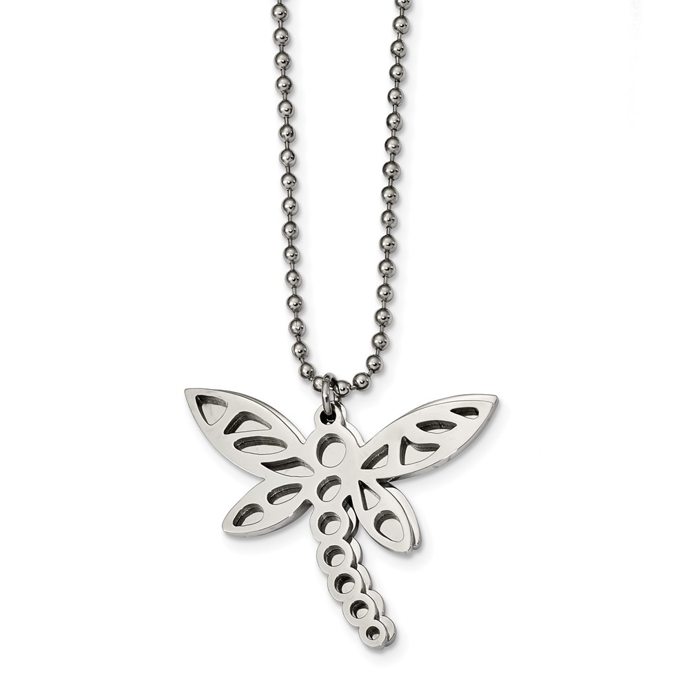 Stainless Steel Polished Two Piece Moveable Dragonfly Necklace