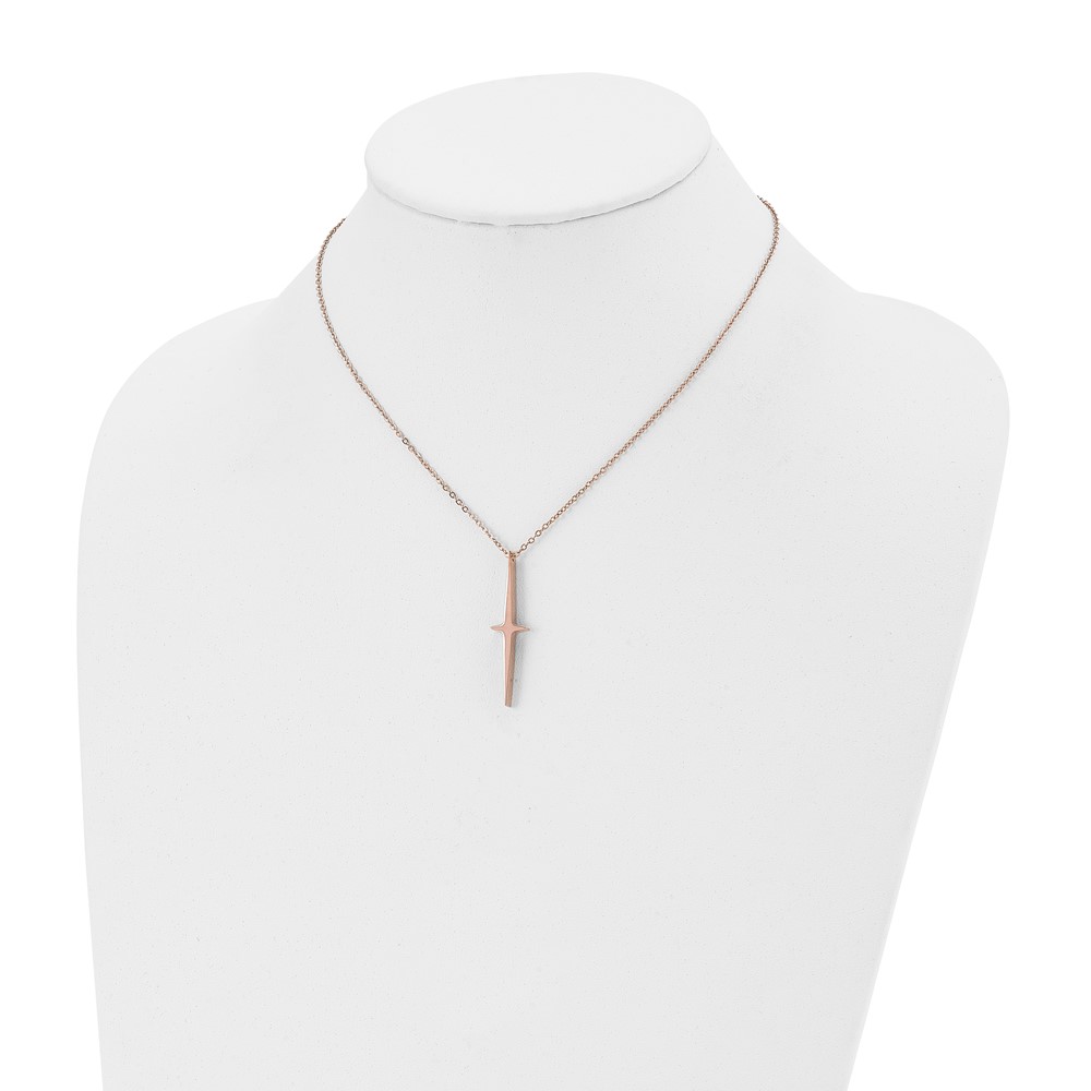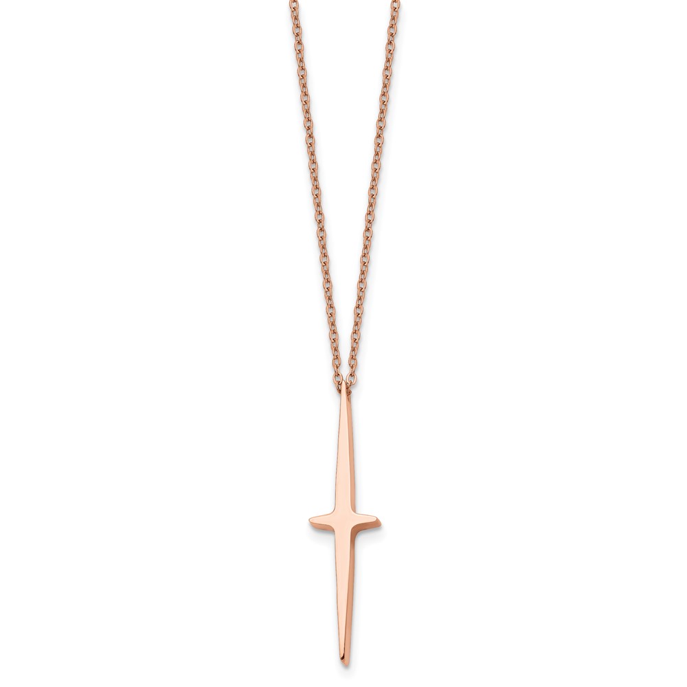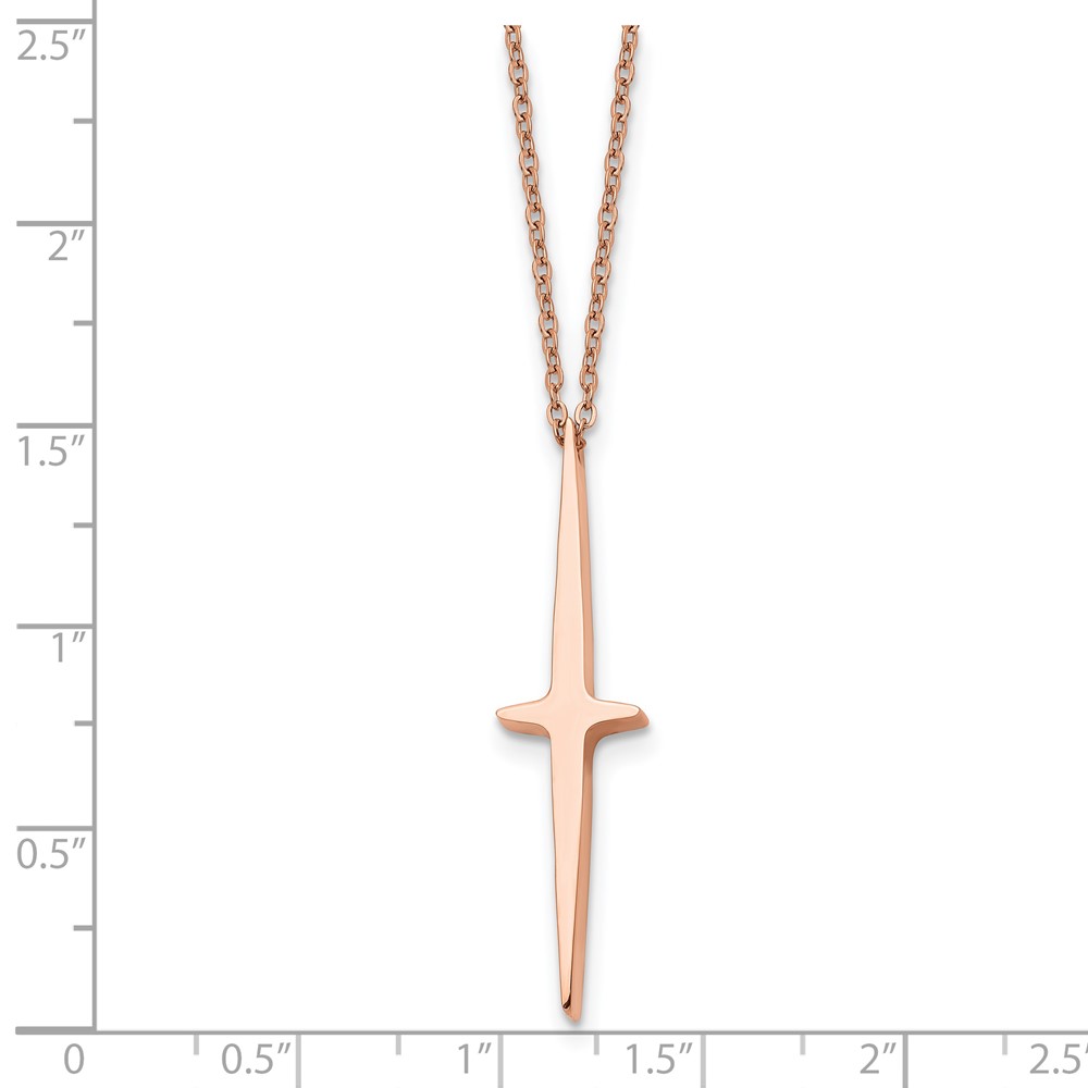 Chisel Stainless Steel Polished Rose IP-plated Cross Pendant on a 16 inch with 2 inch extension Cable Chain Necklace