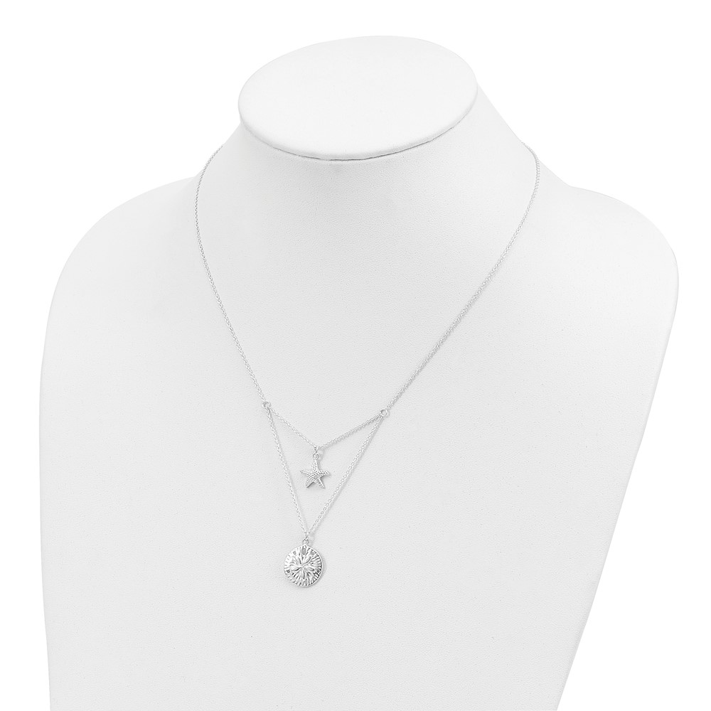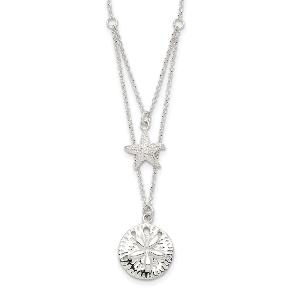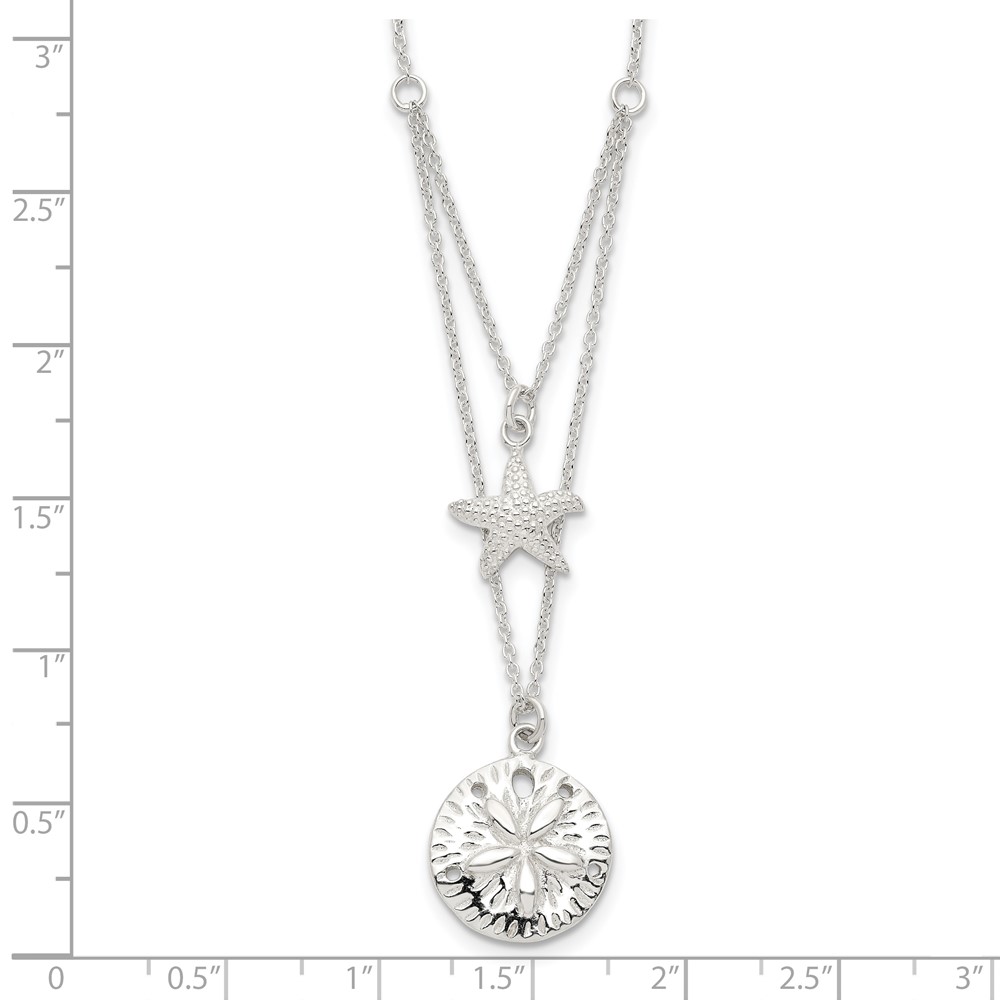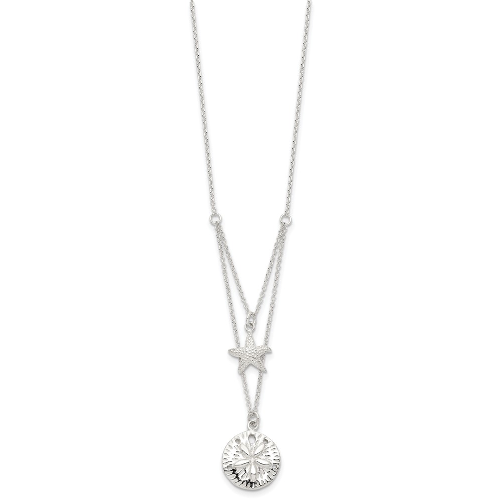 Sterling Silver Starfish and Sand Dollar 18 inch 2-strand Necklace