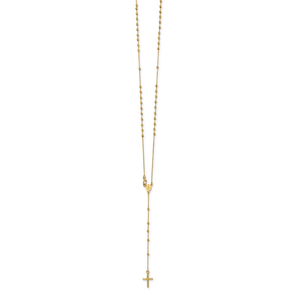 14k Polished Cross and Miraculous Medal Beaded 16.5 inch Rosary Necklace
