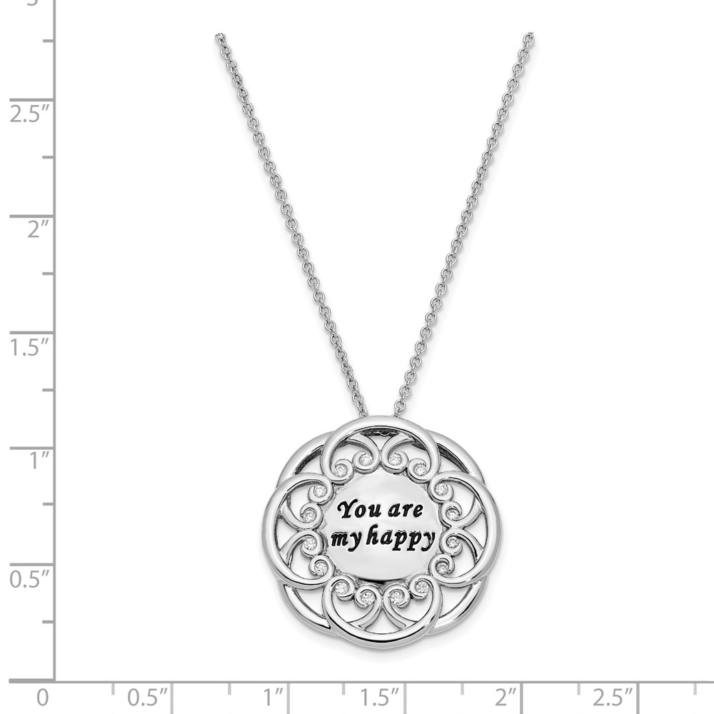Sterling Silver CZ Antiqued You Are My Happy 18in. Necklace
