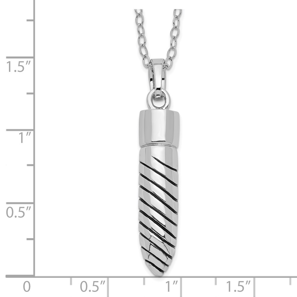 Sentimental Expressions Sterling Silver Rhodium-plated Antiqued Lined Bullet Ash Holder 18 Inch Necklace