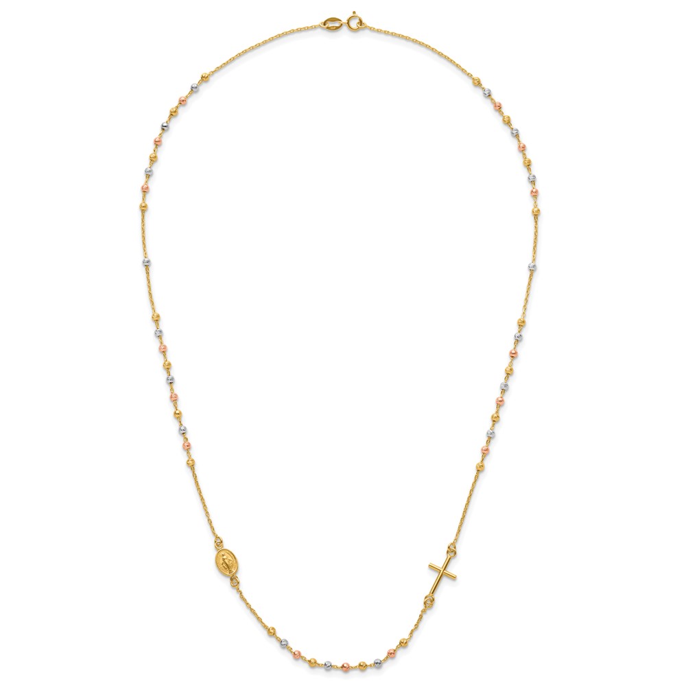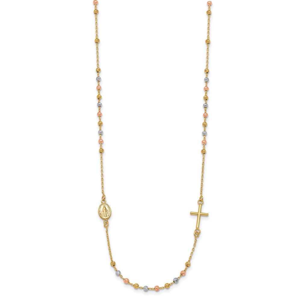 Leslie's 14K Tri-color Sideways Cross Beaded Rosary Style 18 inch Necklace
