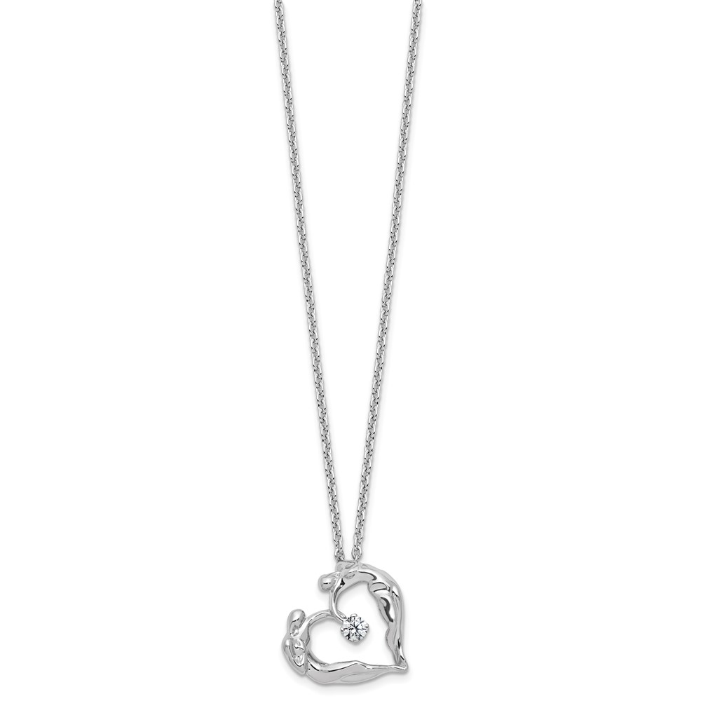 Sterling Silver Polished CZ Lovers Heart Necklace