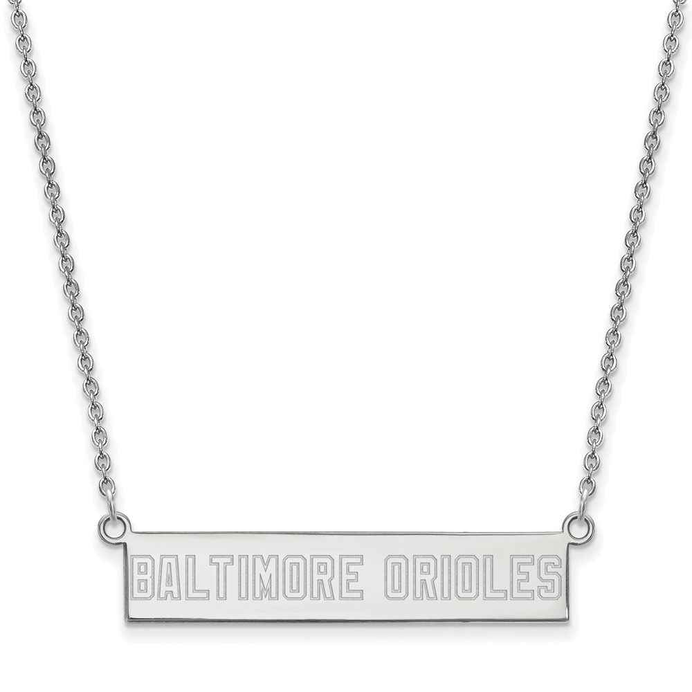 Sterling Silver Rhodium Plated Major League Baseball LogoArt Baltimore Orioles Small Bar Necklace