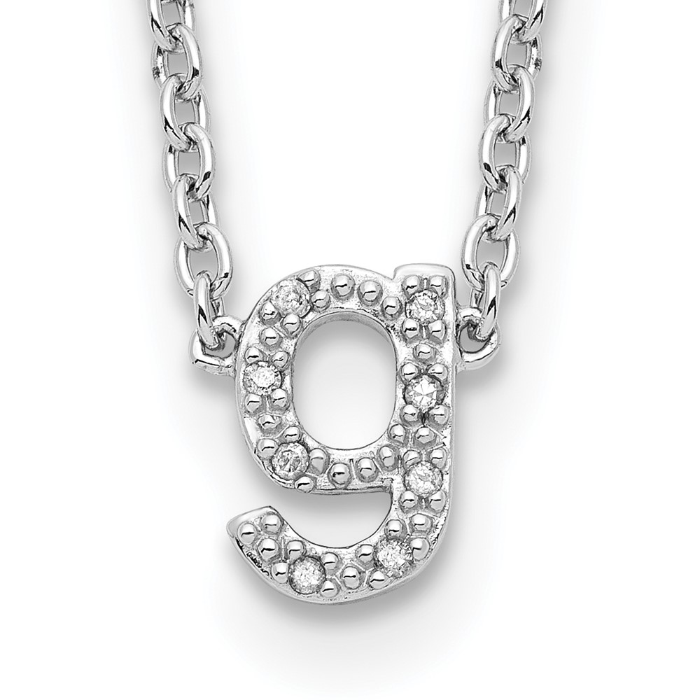 Sterling Silver Polished Diamond Initial g with 16" + 2 in ext Necklace