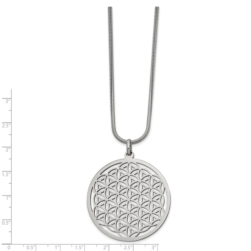 Stainless Steel Polished Flower Cut-out Large Circle 20 inch Necklace