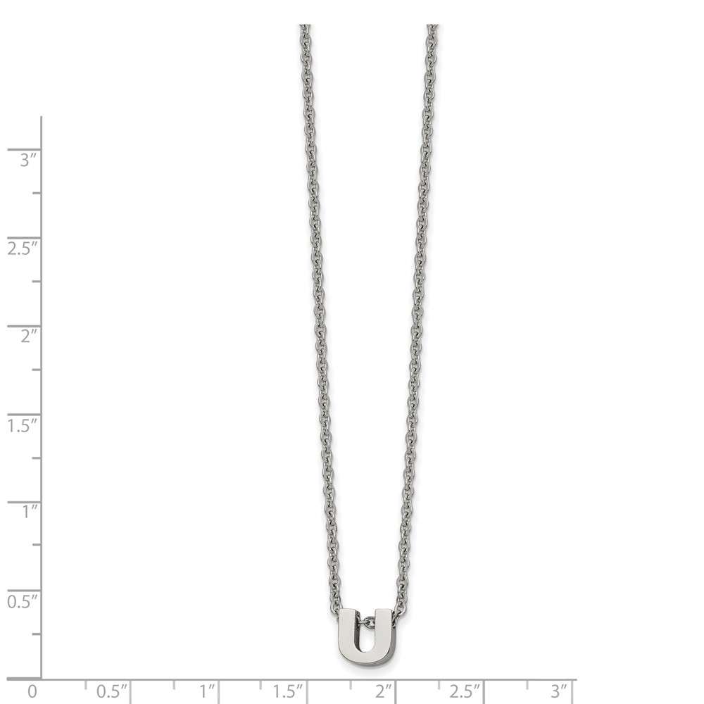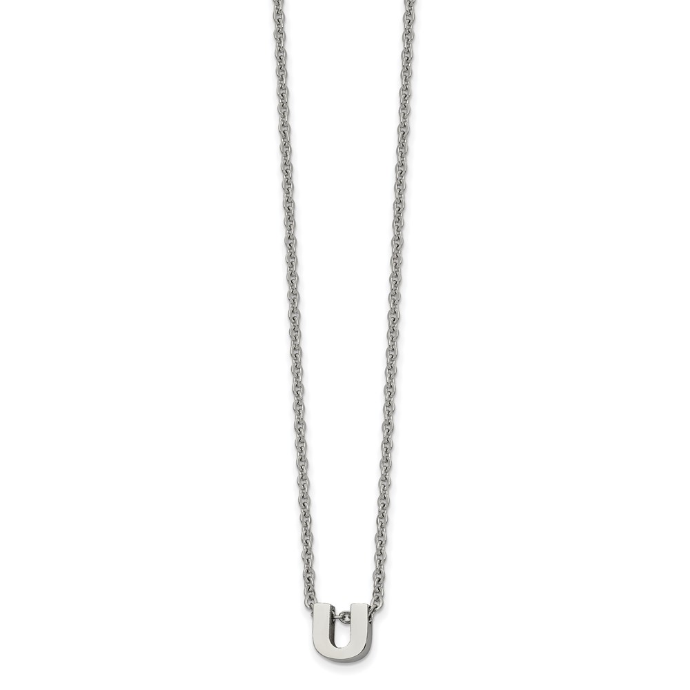 Stainless Steel Polished Letter U 18in w/2in ext Necklace