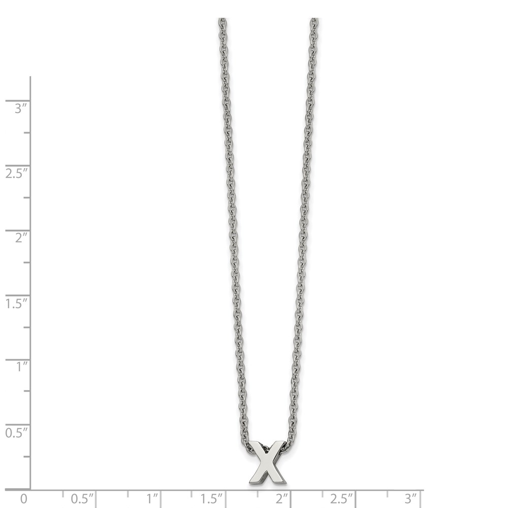 Stainless Steel Polished Letter X 18in w/2in ext Necklace