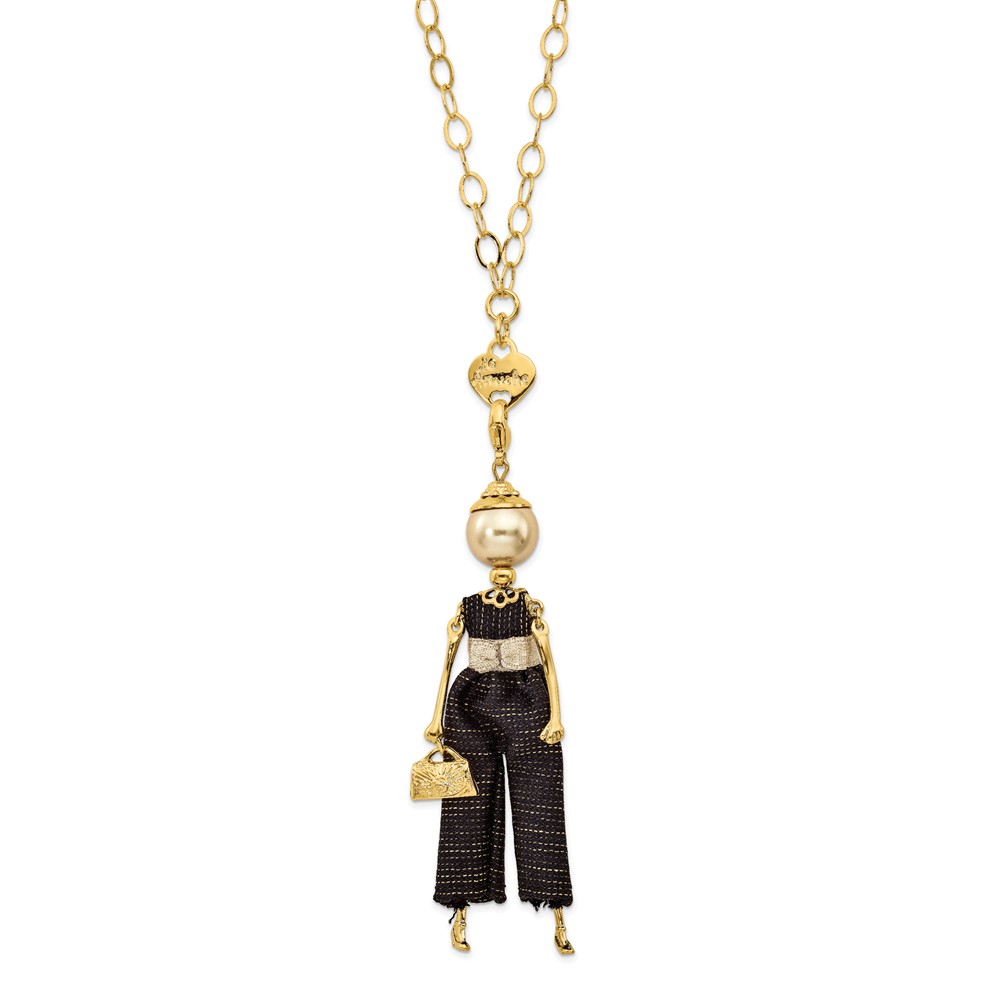 Le Amiche Gold-tone Golden Sim.Pearl Blk Pants Doll Charm w/Chain