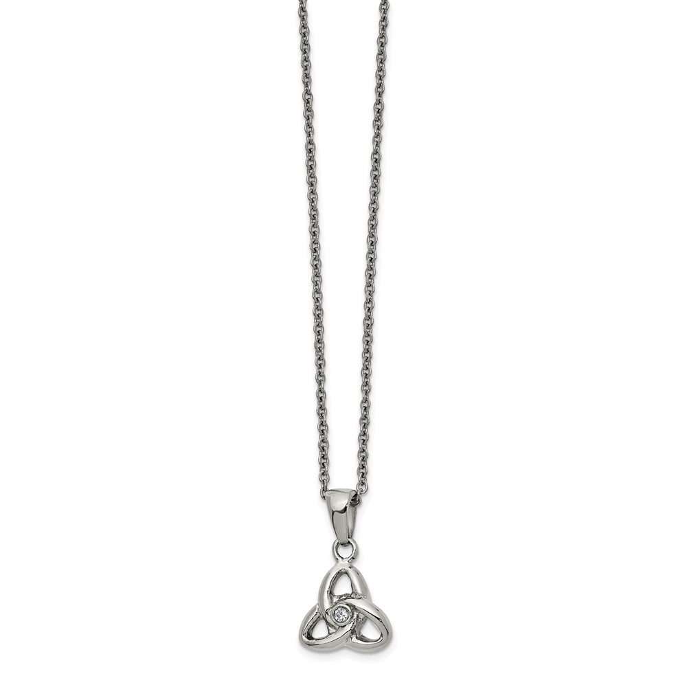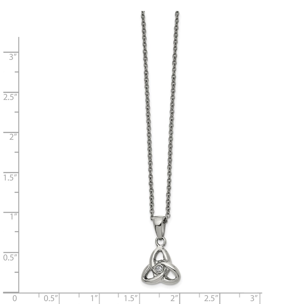 Chisel Stainless Steel Polished with Preciosa Crystal Trinity Knot Pendant on a 16 inch Cable Chain with a 1 inch Extension Necklace