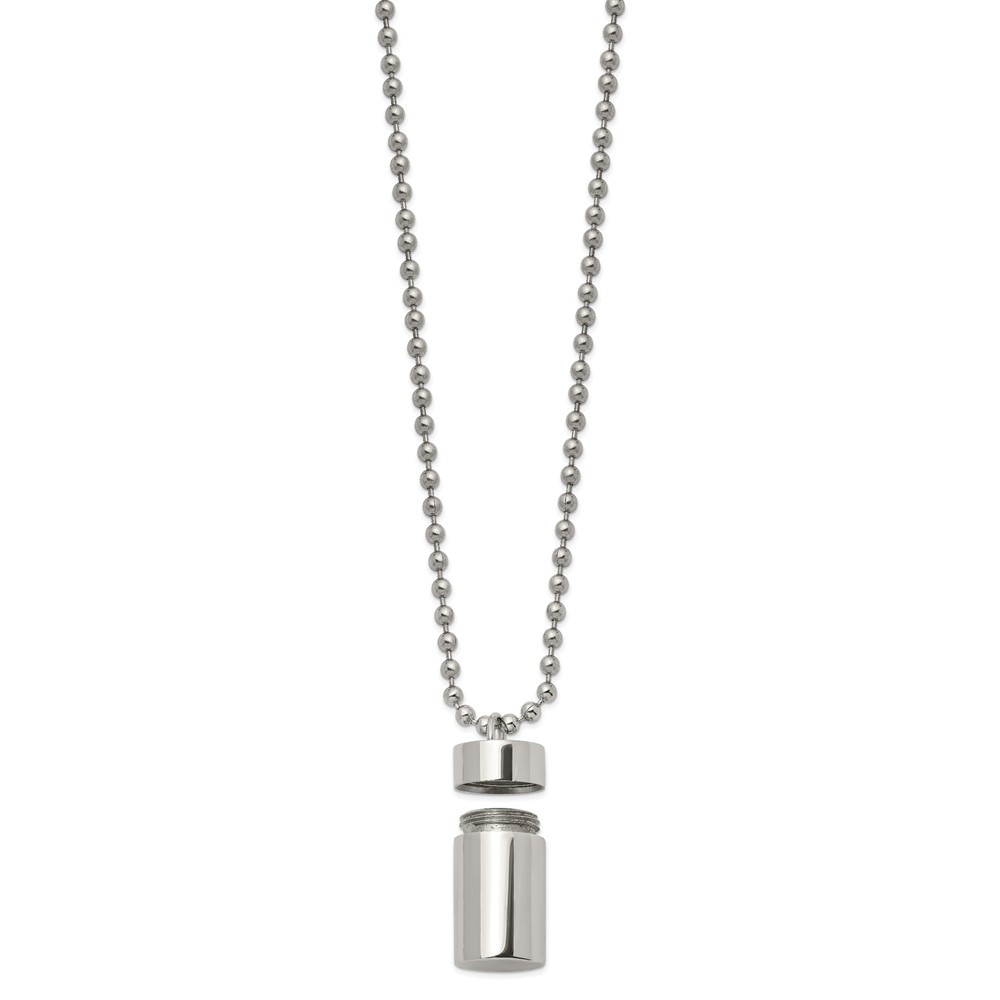 Chisel Stainless Steel Polished Capsule that Opens on a 22 inch Ball Chain Necklace