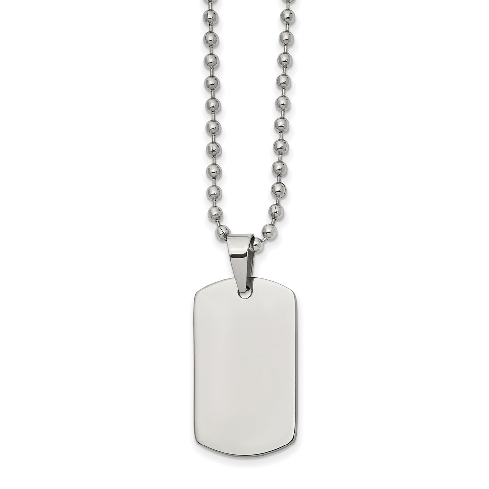 Chisel Stainless Steel Brushed and Polished Reversible Dog Tag on a 22 inch Ball Chain Necklace