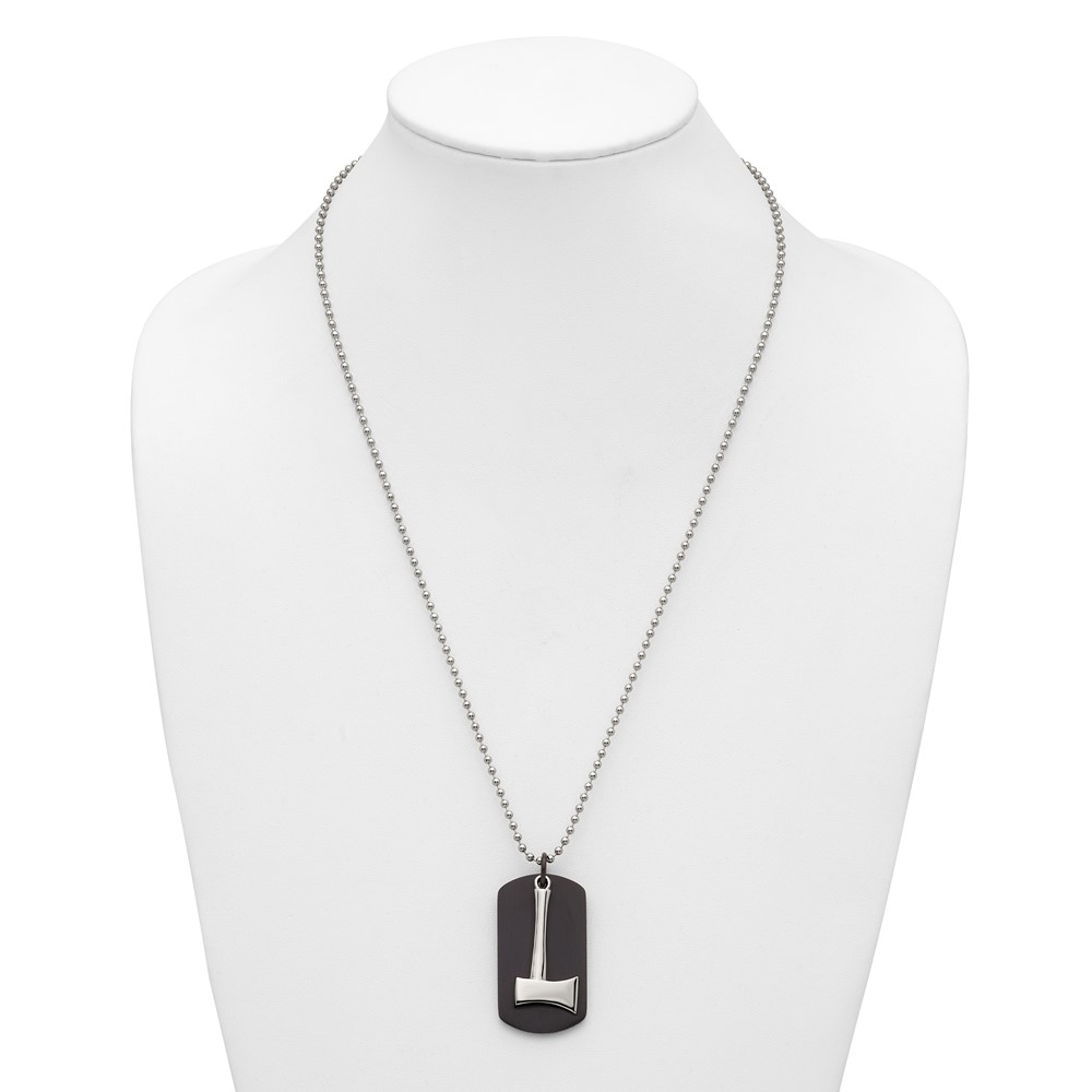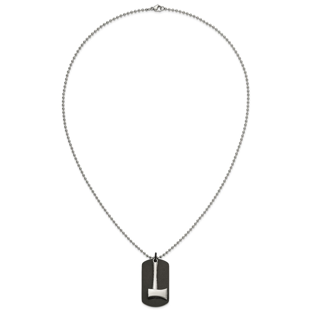 Chisel Stainless Steel Brushed and Polished Black IP-plated Dog Tag with Axe Pendant on a 24 inch Ball Chain Necklace