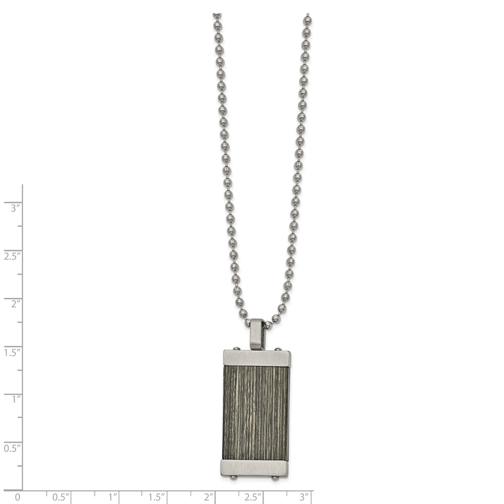 Chisel Stainless Steel Brushed with Grey Wood Inlay Pendant on a 24 inch Ball Chain Necklace