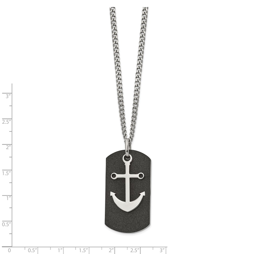 Stainless Steel Polished Black IP-plated Laser cut Anchor 22in Necklace