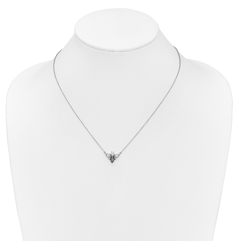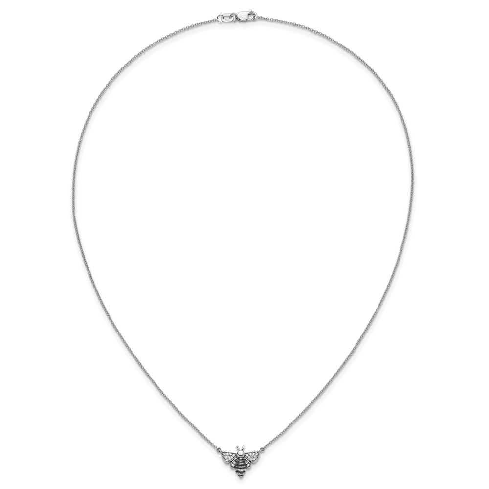 14k White Gold with Black Rhodium 1/10 carat Diamond Bee 18 inch Necklace