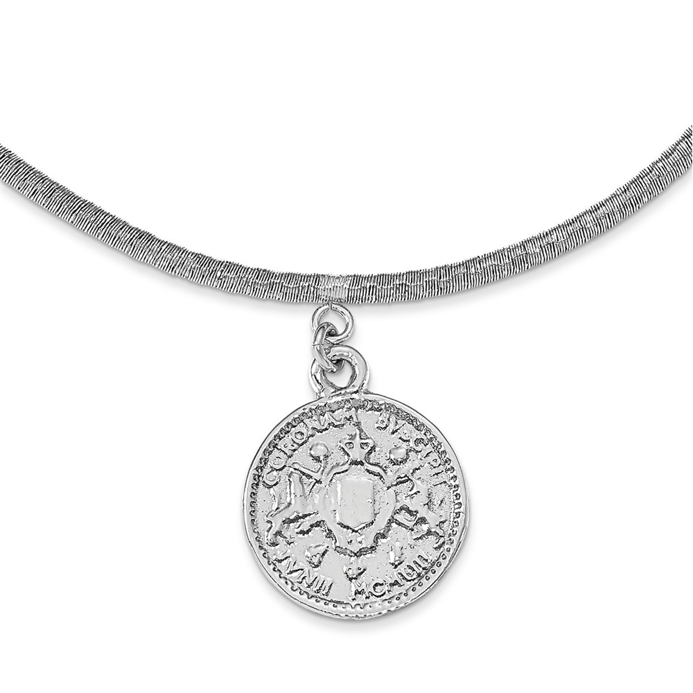 Leslie's SS Rhod-plat Polished Elizabeth II Medal w/1.5 in ext. Necklace