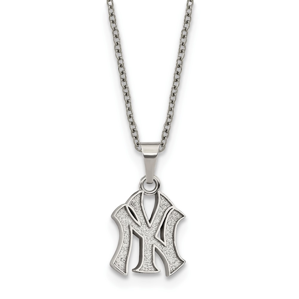 Stainless Steel Major League Baseball LogoArt New York Yankees w/2in ext Pendant Necklace