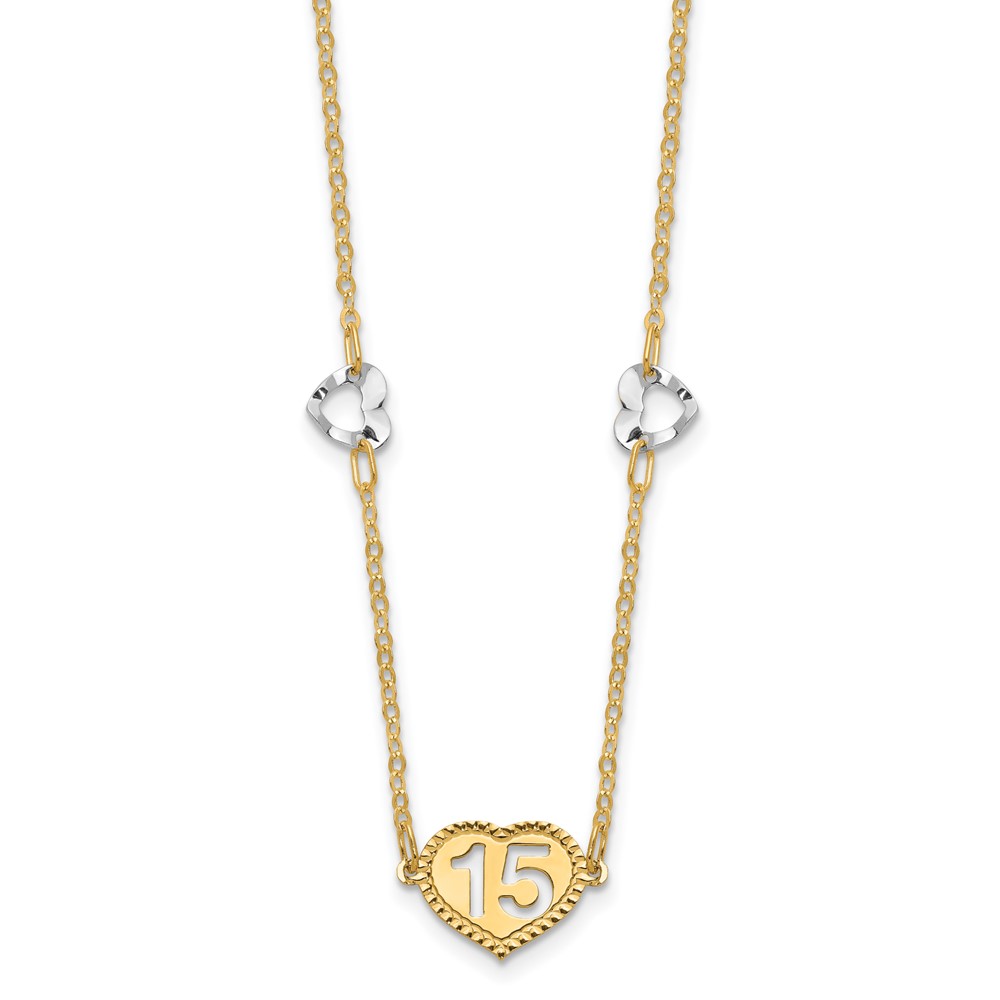 14K Two-tone Polished 15 Heart w/2 in ext Necklace