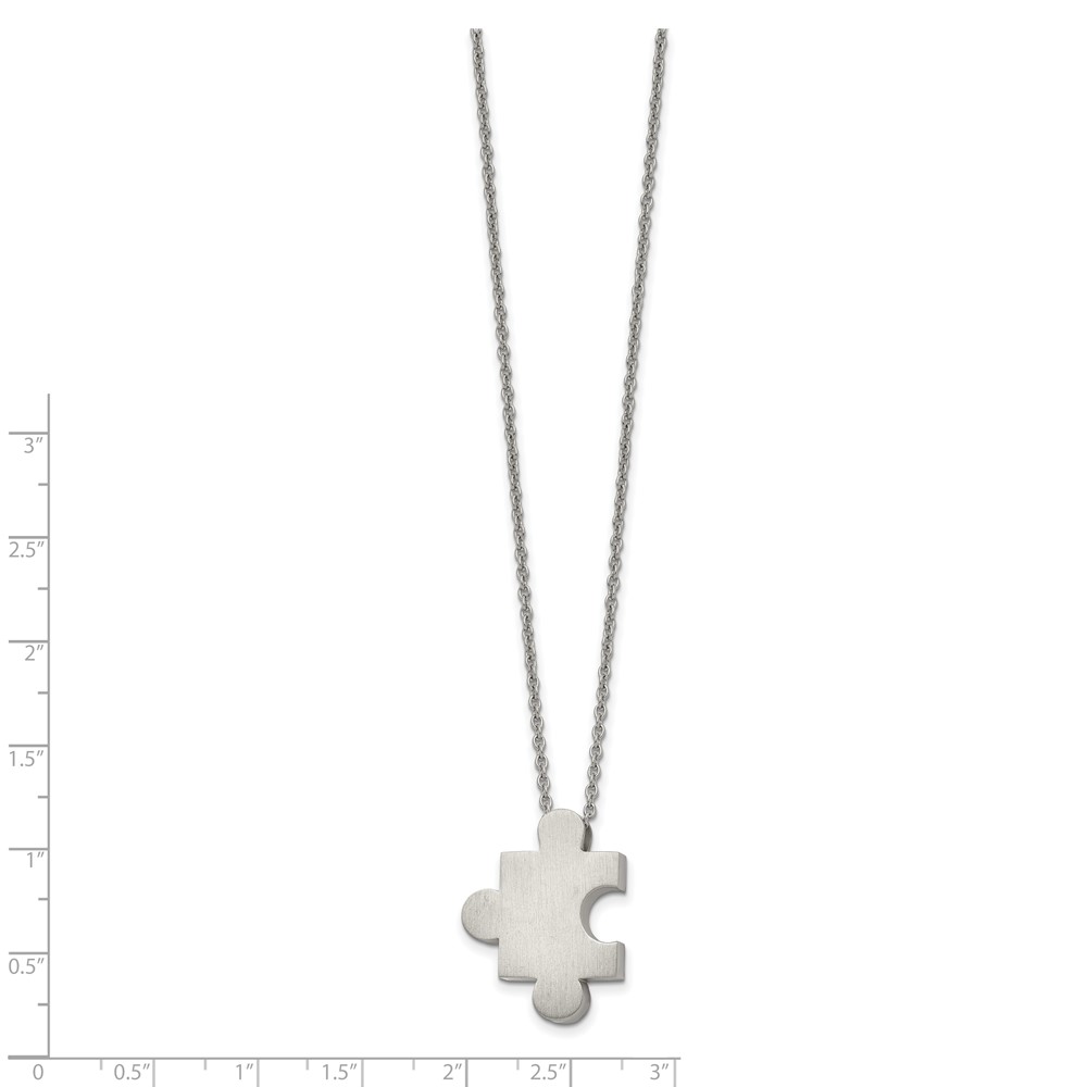 Chisel Stainless Steel Brushed Puzzle Piece Pendant on a 16 inch Cable Chain with 2.75 inch Extension Necklace