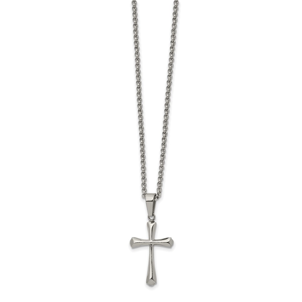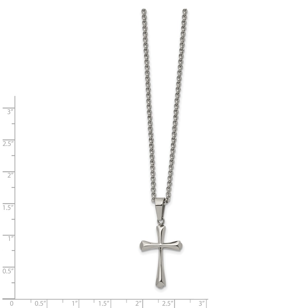 Chisel Stainless Steel Polished Cross Pendant on a 22 inch Rolo Chain Necklace