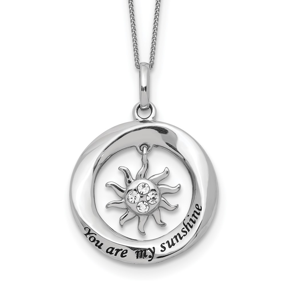 Sterling Silver Enamel YOU ARE MY SUNSHINE Crystal Sun Necklace