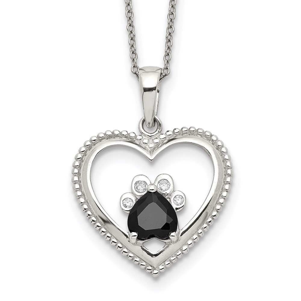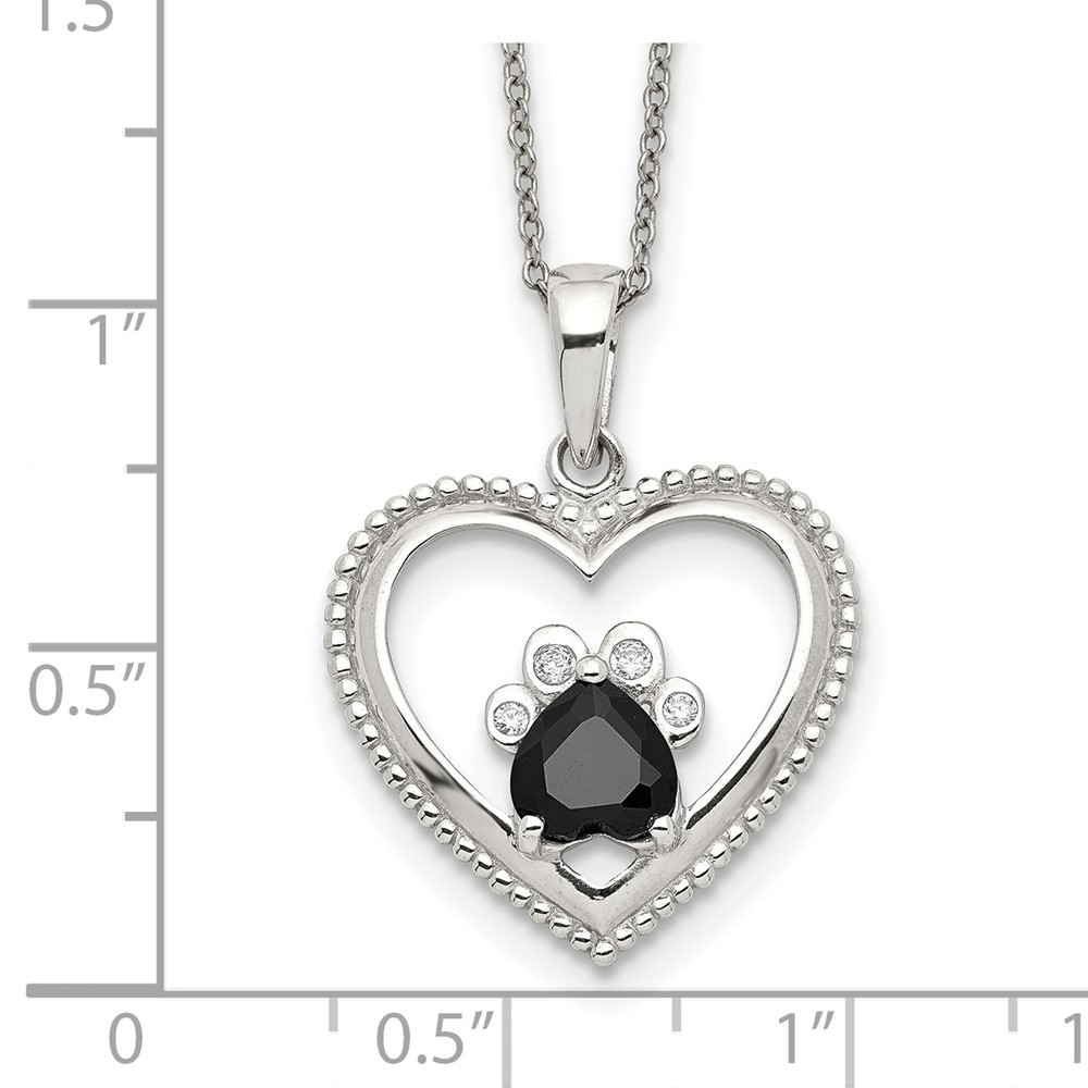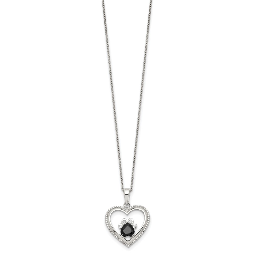 Sterling Silver Black and White CZ Heart with Paw Print 18 inch Necklace