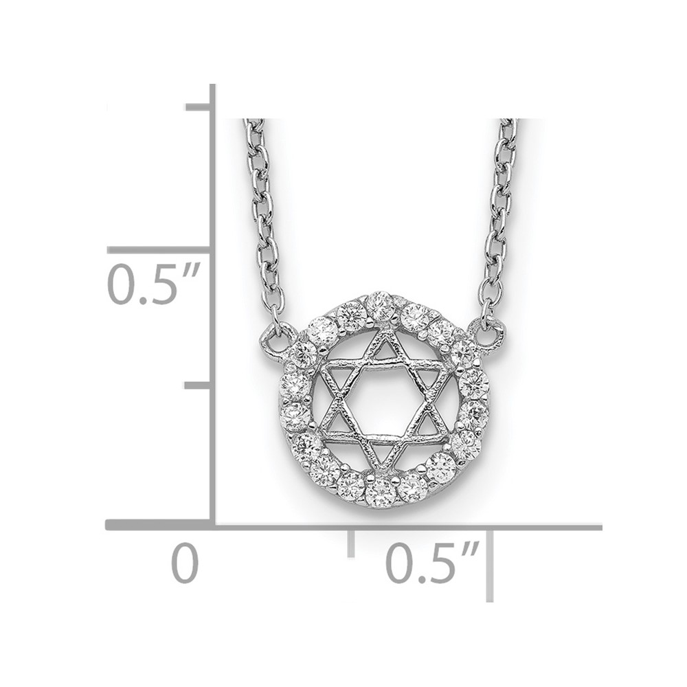 Sterling Silver Rhodium-plated CZ Star of David w/ 2in ext. Necklace