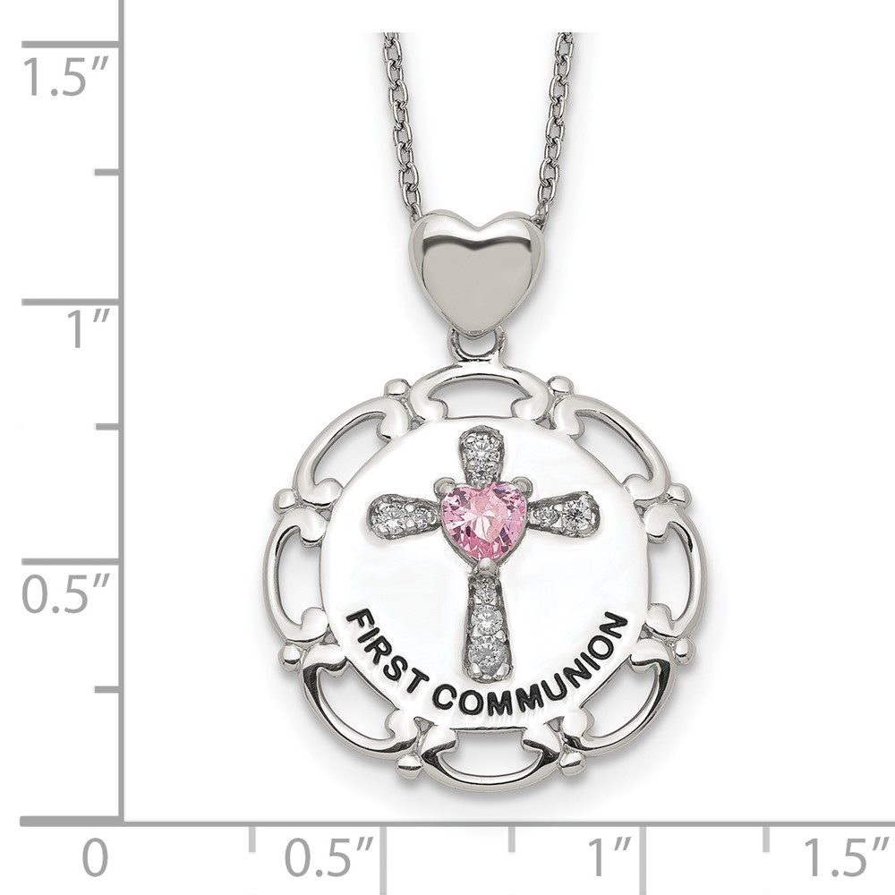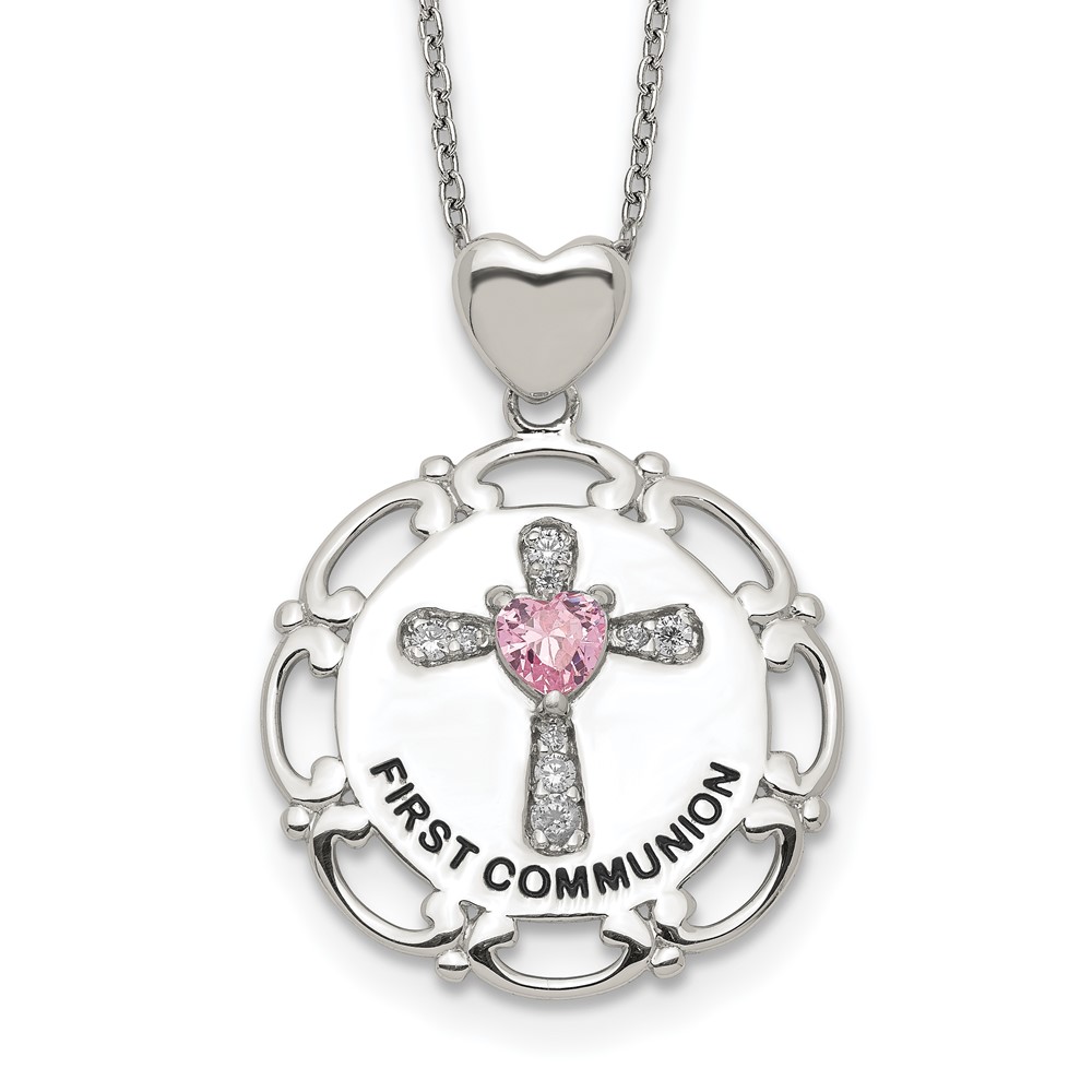Sterling Silver Enameled Pink & Clear CZ Cross Necklace