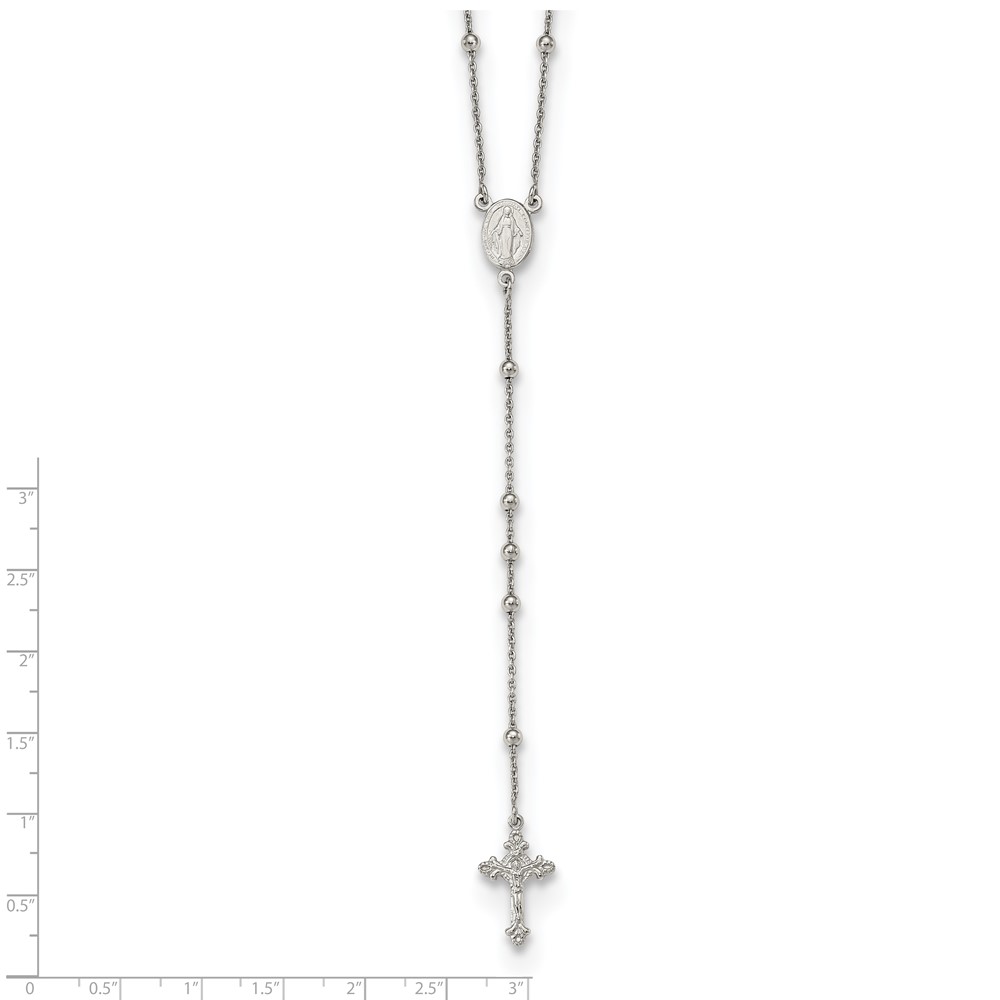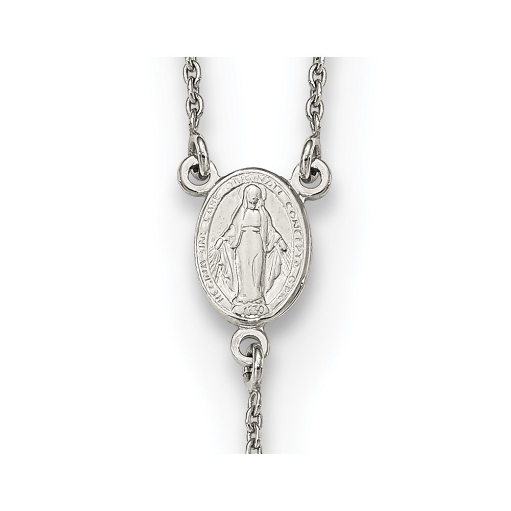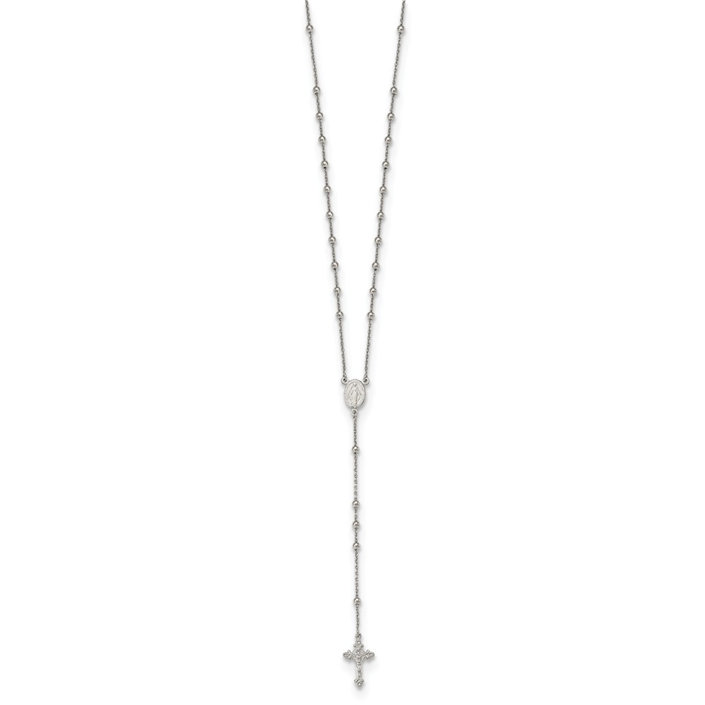 Sterling Silver Rhodium-plated Beaded Rosary 27 inch Necklace