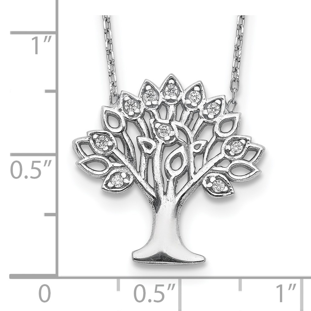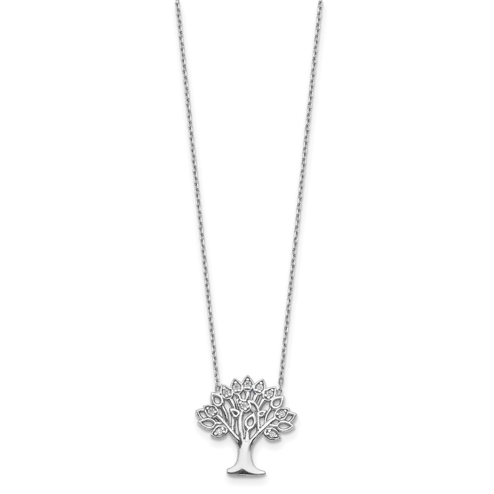 Sterling Silver Rhodium-plated CZ Tree w/ 2in ext. Necklace