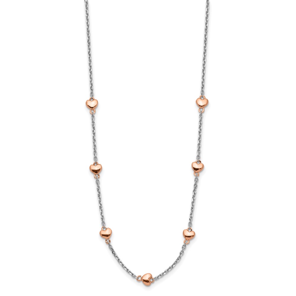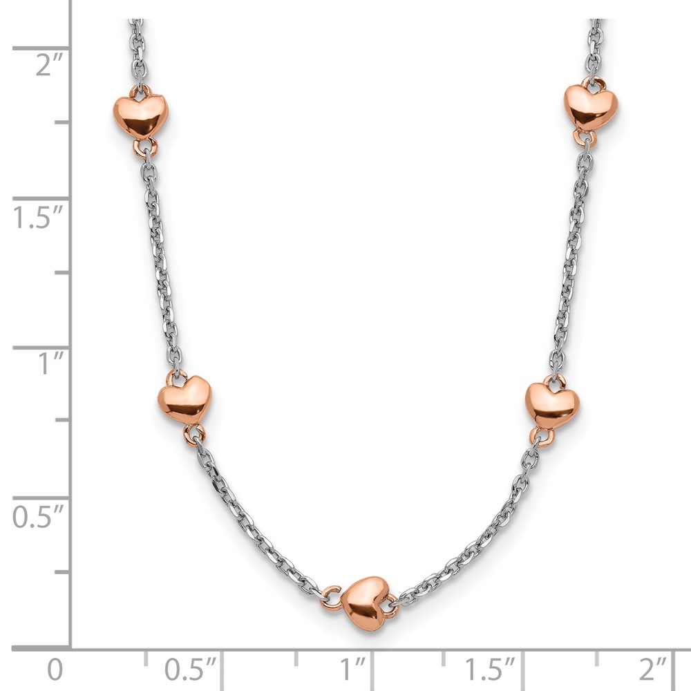 Sterling Silver RH-plated Rose gold-pltd 7-Heart 1.5in ext. Necklace