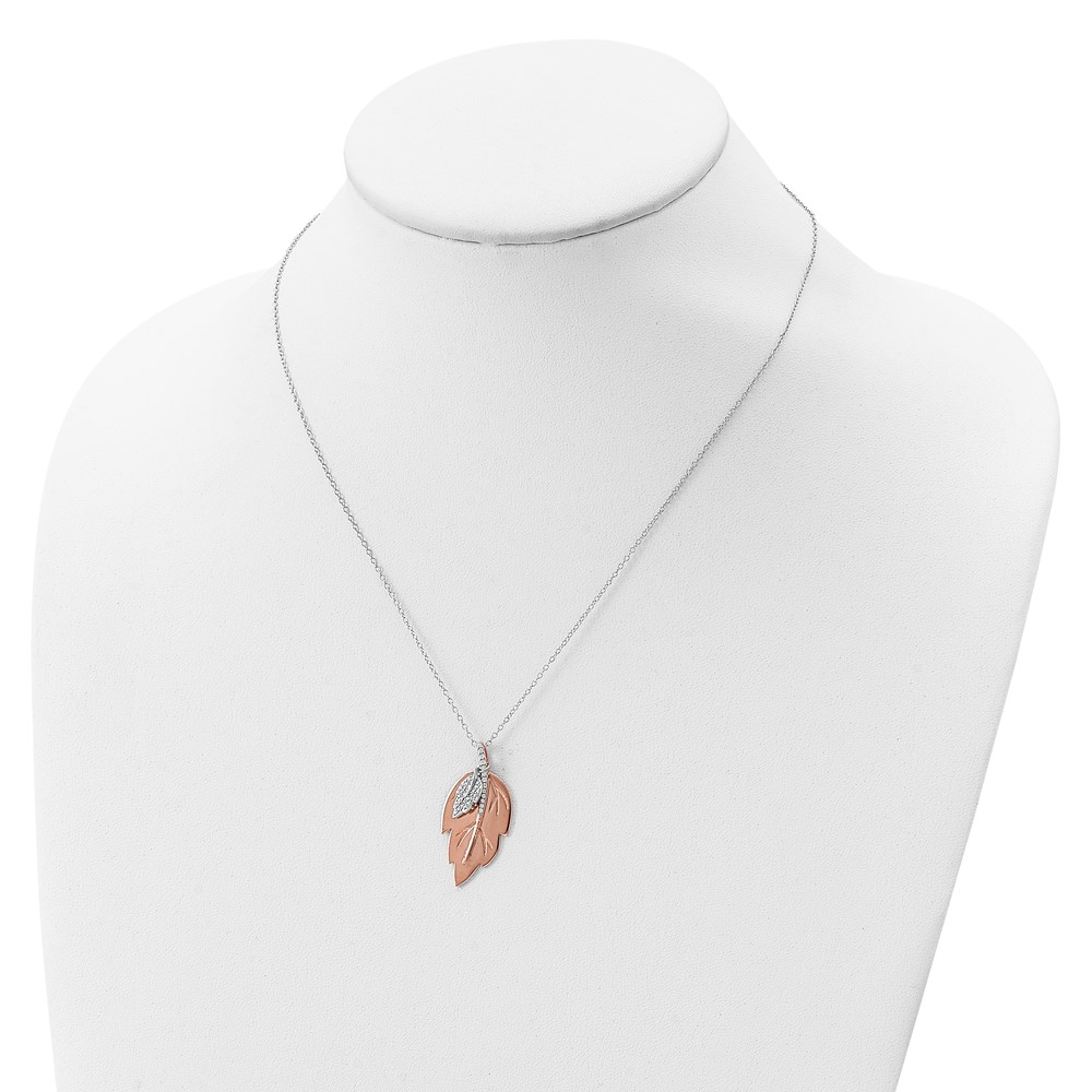 Sterling Silver Rose-tone CZ Leaf w/ 2in ext. Necklace